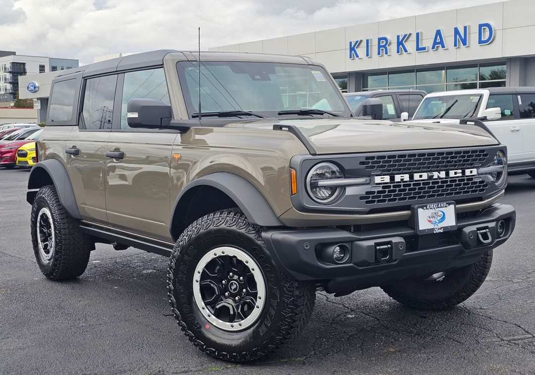 2025 Ford Bronco Badlands2.7L EcoBoost V6 10-Speed Automatic 4WD 4D Sport Utility Marsh Gray 2-Door Intelligent Access w/Lock/Unlock, 360-Degree Camera, 4-Wheel Disc Brakes, 7 Speakers, ABS brakes, Adaptive Cruise Control, Air Conditioning, Alloy wheels, AM/FM radio: SiriusXM with 360L, AM/FM Stereo, Ambient Footwell Lighting, Auto High-Beam Headlamps, Auto High-beam Headlights, Auto-dimming Rear-View mirror, BLIS Blind Spot Information System, Brake assist, Carbonized Gray Molded-In-Color Hard Top, Compass, Connected Navigation, Delay-off headlights, Dr & Pass Illuminated Sliding Visor Vanity Mirrors, Driver door bin, Driver vanity mirror, Dual front impact airbags, Dual front side impact airbags, Dual Smart Charging USB Ports, Dual-Zone Electronic Automatic Temperature Control, Electronic Stability Control, Emergency communication system: 911 Assist, Equipment Group 334A Lux Package, Evasive Steering Assist, Exterior Parking Camera Rear, Front anti-roll bar, Front Bucket Seats, Front Center Armrest, Front fog lights, Front License Plate Bracket, Front Parking Sensors, Front reading lights, Front Row Heated Seats, Front wheel independent suspension, Fully automatic headlights, Hard Top Sound Deadening Headliner, Heated door mirrors, Heated front seats, Heated steering wheel, High Clearance Fender Flares, High Clearance Suspension, Illuminated entry, Information on Demand Panel, Integrated roll-over protection, Internet access capable: FordPass Connect, Lane-Keeping System, Leather Shift Knob, Low tire pressure warning, Marine Grade Vinyl Heated Bucket Seats, Occupant sensing airbag, Outside temperature display, Overhead airbag, Overhead console, Panic alarm, Passenger door bin, Passenger vanity mirror, Position-Sensitive Bilstein Shock Absorbers, Power door mirrors, Power Outlet - Back Side of Center Floor Console, Power steering, Power windows, Pre-Collision Assist w/Automatic Emergency Braking, Radio data system, Radio: B&O Sound System by Bang & Olufsen, Rear Parking Sensors, Rear-View Camera, Rear-Window Defroster & Washer, Remote keyless entry, Sasquatch Package, Security system, Sideview Mirrors, SiriusXM w/360L, Speed control, Split folding rear seat, Steering wheel mounted audio controls, SYNC 4, Tachometer, Telescoping steering wheel, Tilt steering wheel, Traction control, Trip computer, Universal Garage Door Opener, Variably intermittent wipers, Voltmeter, Wheels: 17" Black High Gloss-Painted Aluminum (64X), Wheels: 17" Carbonized Gray Painted Aluminum, Wheels: 17" Carbonized Gray-Painted Aluminum. To see more quality vehicles like this one right here just click on http://www.fordofkirkland.com or dial (425) 500-1074. Prices good through 5-31-2025. Kirkland Price includes:$2500 - Retail Customer Cash