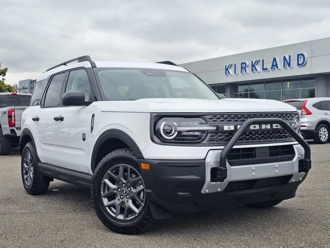 2025 Ford Bronco Sport Big Bend1.5L EcoBoost 8-Speed Automatic 4WD 4D Sport Utility Oxford White 110V/400W AC Power Outlet, 2nd Row Carpeted Seatback, 4-Wheel Disc Brakes, 6 Speakers, ABS brakes, Air Conditioning, Alloy wheels, AM/FM radio: SiriusXM, AM/FM Stereo, Auto High-beam Headlights, Automatic temperature control, Auxiliary Switches & Wiring, Black Diamond Off-Road Package, Brake assist, Brush Guard, Cargo Management System (Shelf/Divider/Table), Cargo Mat, Class II Trailer Tow Pack w/Trailer Sway Control, Cloth w/Easy-to-Clean Front Bucket Seats, Compass, Delay-off headlights, Driver door bin, Driver vanity mirror, Dual front impact airbags, Dual front side impact airbags, Electronic Stability Control, Emergency communication system: SYNC 4 911 Assist, Equipment Group 200A, Fender Tie Downs, Four wheel independent suspension, Front & Rear Black Bumpers, Front anti-roll bar, Front Bucket Seats, Front Center Armrest, Front License Plate Bracket, Front reading lights, Fully automatic headlights, Heated door mirrors, Illuminated entry, Interior Grab Handle, Knee airbag, Low tire pressure warning, Occupant sensing airbag, Outside temperature display, Overhead airbag, Overhead console, Panic alarm, Passenger door bin, Passenger vanity mirror, Power door mirrors, Power steering, Power windows, Radio data system, Rear anti-roll bar, Rear Parking Sensors, Rear reading lights, Rear seat center armrest, Rear window defroster, Rear window wiper, Recovery Hooks, Remote keyless entry, Security system, SiriusXM, Speed control, Speed-sensing steering, Speed-Sensitive Wipers, Split folding rear seat, Steering wheel mounted audio controls, SYNC 4 w/Enhanced Voice Recognition, Tachometer, Telescoping steering wheel, Tilt steering wheel, Traction control, Trip computer, Variably intermittent wipers, Wheels: 17" Carbonized Gray Painted Aluminum, Wheels: 17" Carbonized Gray-Painted Aluminum. To see more quality vehicles like this one right here just click on http://www.fordofkirkland.com or dial (425) 500-1074. Prices good through 5-31-2025. Kirkland Price includes:$3000 - Retail Customer Cash