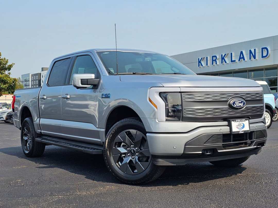 2025 Ford F-150 Lightning LariatElectric Motor Single-Speed Automatic AWD 4D Crew Cab Silver Metallic 4-Wheel Disc Brakes, 8 Speakers, ABS brakes, ActiveX Trimmed Heated & Ventilated Seats, Adjustable pedals, Air Conditioning, Alloy wheels, Auto High-beam Headlights, Auto tilt-away steering wheel, Auto-dimming door mirrors, Auto-dimming Rear-View mirror, Automatic temperature control, Brake assist, Bumpers: body-color, Compass, Delay-off headlights, Driver door bin, Driver vanity mirror, Dual front impact airbags, Dual front side impact airbags, Electronic Stability Control, Emergency communication system: SYNC 4 911 Assist, Equipment Group 511A Standard, Four wheel independent suspension, Front anti-roll bar, Front Bucket Seats, Front Center Armrest, Front dual zone A/C, Front License Plate Bracket, Front reading lights, Fully automatic headlights, Heated door mirrors, Heated front seats, Heated rear seats, Heated steering wheel, Illuminated entry, Illuminated running boards, Internet access capable: FordPass Connect 4G, Knee airbag, Low tire pressure warning, Memory seat, Mobile Power Cord (120/240V), Navigation system: Connected Navigation, Occupant sensing airbag, Outside temperature display, Overhead airbag, Overhead console, Panic alarm, Passenger door bin, Passenger vanity mirror, Pedal memory, Power door mirrors, Power driver seat, Power moonroof, Power passenger seat, Power steering, Power windows, Radio data system, Radio: B&O Sound System by Bang & Olufsen, Rain sensing wipers, Rear anti-roll bar, Rear reading lights, Rear seat center armrest, Rear step bumper, Rear window defroster, Remote keyless entry, Security system, Speed control, Speed-sensing steering, Split folding rear seat, Steering wheel memory, Steering wheel mounted audio controls, SYNC 4A w/Enhanced Voice Recognition, Telescoping steering wheel, Tilt steering wheel, Tough Bed Spray-In Bedliner, Traction control, Trip computer, Turn signal indicator mirrors, Variably intermittent wipers, Ventilated front seats, Wheels: 20" Alloy Dark Carbonized Gray. To see more quality vehicles like this one right here just click on http://www.fordofkirkland.com or dial (425) 500-1074. Prices good through 5-31-2025. Kirkland Price includes:$1000 - Retail Bonus Cash $1000 - Truck Month Retail Bonus Cash $5000 - Retail Customer Cash