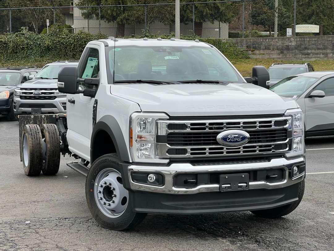 2025 Ford F-450SD XL DRWDRW 7.3L V8 PFI OHV 16V Federal 335hp 10-Speed Automatic RWD 2D Standard Cab Oxford White 120V/400W Outlet, 190 Amp Alternator, 4 Speakers, 4-Wheel Disc Brakes, 410 Amp Dual Alternators, ABS brakes, Air Conditioning, AM/FM radio, AM/FM Stereo w/MP3 Player, Brake assist, Bright Grille, Chrome Front Bumper, Compass, Delay-off headlights, Dual 68 AH/65 AGM Battery, Dual front impact airbags, Dual front side impact airbags, Dual rear wheels, Emergency communication system: SYNC 4 911 Assist, Front anti-roll bar, Front Center Armrest w/Storage, Front License Plate Bracket, Front reading lights, Fully automatic headlights, GVWR: 16,500 lb Payload Package, Halogen Fog Lamps, HD Vinyl 40/20/40 Split Bench Seat, Heated door mirrors, Illuminated entry, Interior Work Surface, Internet access capable: FordPass Connect 5G, Order Code 650A, Outside temperature display, Overhead airbag, Overhead console, Panic alarm, Passenger cancellable airbag, Passenger vanity mirror, Platform Running Boards, Power door mirrors, Power steering, Power windows, Rear anti-roll bar, Rear View Camera & Prep Kit, Remote keyless entry, Remote Start, Security system, Speed control, Steering wheel mounted audio controls, SYNC 4 Communication & Entertainment System, Tachometer, Telescoping steering wheel, Tilt steering wheel, Traction control, Trailer Brake Controller, Trip computer, Turn signal indicator mirrors, Variably intermittent wipers, Wheels: 19.5" x 6" Argent Painted Steel, XL Chrome Package. To see more quality vehicles like this one right here just click on http://www.fordofkirkland.com or dial (425) 500-1074. Prices good through 5-31-2025. Kirkland Price includes:$5000 - Retail Customer Cash