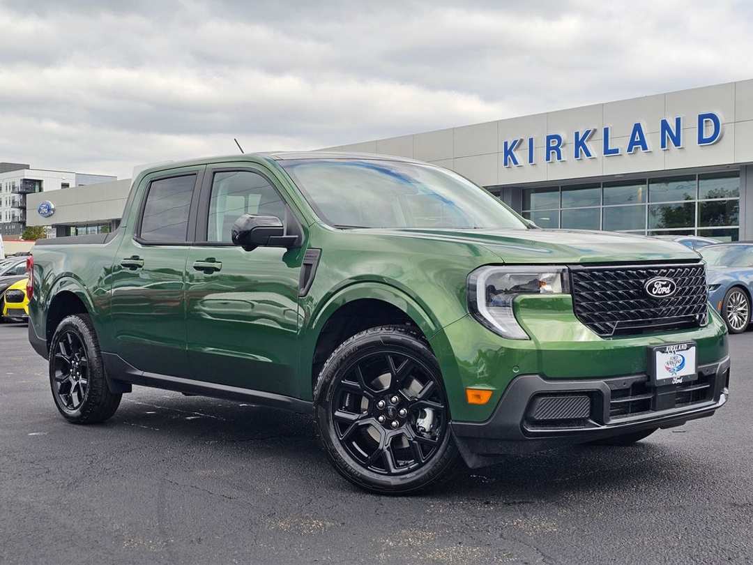 2025 Ford Maverick LariatEcoBoost 2.0L I4 GTDi DOHC Turbocharged VCT 8-Speed Automatic AWD 4D Crew Cab Green 2.91 Axle Ratio, 4-Wheel Disc Brakes, 4K Tow Package, 8 Speakers, ABS brakes, ActiveX Trimmed Heated Front Bucket Seats, Air Conditioning, Alloy wheels, AM/FM radio: SiriusXM with 360L, Apple CarPlay/Android Auto, Auto High-beam Headlights, Automatic temperature control, Black Appearance Package, Black Grille, Black Interior Accents, Brake assist, Bumpers: body-color, Compass, Delay-off headlights, Driver door bin, Driver vanity mirror, Dual front impact airbags, Dual front side impact airbags, Electronic Stability Control, Emergency communication system: SYNC 4 911 Assist, Equipment Group 502A, Exterior Parking Camera Rear, Four wheel independent suspension, Front & Back Black Edition Ford Logo, Front anti-roll bar, Front Bucket Seats, Front Center Armrest, Front dual zone A/C, Front reading lights, Fully automatic headlights, Heated door mirrors, Heated front seats, Heated steering wheel, Illuminated entry, Internet access capable: FordPass Connect 5G, Knee airbag, Low tire pressure warning, Navigation system: Connected Navigation, Occupant sensing airbag, Outside temperature display, Overhead airbag, Overhead console, Panic alarm, Passenger door bin, Passenger vanity mirror, Power door mirrors, Power driver seat, Power Moonroof, Power steering, Power windows, Radio data system, Radio: B&O Sound System by Bang & Olufsen, Rear anti-roll bar, Rear seat center armrest, Rear step bumper, Remote keyless entry, Security system, SiriusXM w/360L, Speed control, Speed-sensing steering, Steering wheel mounted audio controls, SYNC 4 w/Enhanced Voice Recognition, Telescoping steering wheel, Tilt steering wheel, Traction control, Trailer Brake Controller, Trailer Hitch (Class III) 2" Receiver, Transmission Oil Cooler, Trip computer, Upgraded Cooling Fan, Wheels: 19" Black Painted Aluminum, Wheels: 19" Machined Painted Aluminum. To see more quality vehicles like this one right here just click on http://www.fordofkirkland.com or dial (425) 500-1074. Prices good through 5-31-2025. Kirkland Price includes:$1000 - Truck Month Bonus Customer Cash $1500 - Retail Customer Cash