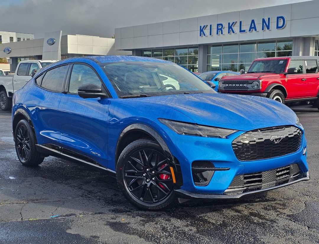 2025 Ford Mustang Mach-E PremiumDual Electric Motor Single-Speed Automatic AWD 4D Sport Utility Velocity Blue Metallic 10 Speakers, 4-Wheel Disc Brakes, ABS brakes, Air Conditioning, Alloy wheels, AM/FM radio: SiriusXM with 360L, Apple CarPlay/Android Auto, Auto High-beam Headlights, Auto-dimming Rear-View mirror, Automatic temperature control, Brake assist, Brembo Branded Front Brakes, Bumpers: body-color, Compass, Delay-off headlights, Driver door bin, Driver vanity mirror, Dual front impact airbags, Dual front side impact airbags, Electronic Stability Control, Emergency communication system: 911 Assist, Equipment Group 300A Standard Package, Exterior Parking Camera Rear, Four wheel independent suspension, Front anti-roll bar, Front Bucket Seats, Front Center Armrest, Front dual zone A/C, Front License Plate Bracket, Front reading lights, Fully automatic headlights, Garage door transmitter, Heated door mirrors, Heated front seats, Heated steering wheel, Heated/Ventilated Perforated ActiveX Bucket Seats, Illuminated entry, Internet access capable: FordPass Connect, Knee airbag, Low tire pressure warning, Memory seat, Mobile Power Cord (120V/240V), NACS Fast Charging Adapter, Navigation system: Connected Navigation, Occupant sensing airbag, Outside temperature display, Overhead airbag, Overhead console, Panic alarm, Passenger door bin, Passenger vanity mirror, Power door mirrors, Power driver seat, Power Liftgate, Power passenger seat, Power steering, Power windows, Radio data system, Radio: B&O Sound System by Bang & Olufsen, Rain sensing wipers, Rear anti-roll bar, Rear seat center armrest, Rear side impact airbag, Rear window defroster, Rear window wiper, Red Painted Front & Rear Brake Calipers, Remote keyless entry, Security system, SiriusXM w/360L, Speed control, Speed-sensing steering, Speed-Sensitive Wipers, Split folding rear seat, Spoiler, Sport Appearance Package, Sport Pedals, Steering wheel mounted audio controls, SYNC 4A w/Enhanced Voice Recognition, Telescoping steering wheel, Tilt steering wheel, Tire Inflator & Sealant Kit, Traction control, Trip computer, Turn signal indicator mirrors, Unique Front Fascia, Variably intermittent wipers, Ventilated front seats, Wheels: 19" Bright Machined-Face Aluminum, Wheels: 19" Monochromatic High Gloss Black-Painted. To see more quality vehicles like this one right here just click on http://www.fordofkirkland.com or dial (425) 500-1074.
