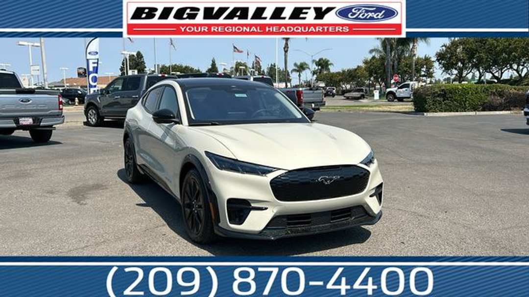 Desert Sand 2025 Ford Mustang Mach-E Premium AWD Single-Speed Automatic Dual Electric Motor 10 Speakers, 1st & 2nd Row Floor Liners w/o Carpet Mats, 4-Wheel Disc Brakes, ABS brakes, Air Conditioning, Alloy wheels, AM/FM radio: SiriusXM with 360L, Apple CarPlay/Android Auto, Auto High-beam Headlights, Auto-dimming Rear-View mirror, Automatic temperature control, Brake assist, Brembo Branded Front Brakes, Bumpers: body-color, Cargo Area Cover, Cargo Floor Liner, Compass, Delay-off headlights, Driver door bin, Driver vanity mirror, Dual front impact airbags, Dual front side impact airbags, Electronic Stability Control, Emergency communication system: 911 Assist, Equipment Group 300A Standard Package, Exterior Parking Camera Rear, Four wheel independent suspension, Front anti-roll bar, Front Bucket Seats, Front Center Armrest, Front dual zone A/C, Front License Plate Bracket, Front reading lights, Fully automatic headlights, Garage door transmitter, Heated door mirrors, Heated front seats, Heated steering wheel, Heated/Ventilated Perforated ActiveX Bucket Seats, Illuminated entry, Interior Protection Package, Internet access capable: FordPass Connect, Knee airbag, Low tire pressure warning, Memory seat, Mobile Power Cord (120V/240V), NACS Fast Charging Adapter, Navigation system: Connected Navigation, Occupant sensing airbag, Outside temperature display, Overhead airbag, Overhead console, Panic alarm, Panoramic Fixed-Glass Roof, Passenger door bin, Passenger vanity mirror, Power door mirrors, Power driver seat, Power Liftgate, Power passenger seat, Power steering, Power windows, Radio data system, Radio: B&O Sound System by Bang & Olufsen, Rain sensing wipers, Rear anti-roll bar, Rear seat center armrest, Rear side impact airbag, Rear window defroster, Rear window wiper, Red Painted Front & Rear Brake Calipers, Remote keyless entry, Security system, SiriusXM w/360L, Speed control, Speed-sensing steering, Speed-Sensitive Wipers, Split folding rear seat, Spoiler, Sport Appearance Package, Sport Pedals, Steering wheel mounted audio controls, SYNC 4A w/Enhanced Voice Recognition, Telescoping steering wheel, Tilt steering wheel, Tire Inflator & Sealant Kit, Traction control, Trip computer, Turn signal indicator mirrors, Unique Front Fascia, Variably intermittent wipers, Ventilated front seats, Wheels: 19" Bright Machined-Face Aluminum, Wheels: 19" Monochromatic High Gloss Black-Painted.95/88 City/Highway MPG