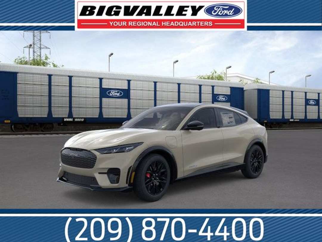 Desert Sand 2025 Ford Mustang Mach-E Premium AWD Single-Speed Automatic Dual Electric Motor 10 Speakers, 4-Wheel Disc Brakes, ABS brakes, Air Conditioning, Alloy wheels, AM/FM radio: SiriusXM with 360L, Apple CarPlay/Android Auto, Auto High-beam Headlights, Auto-dimming Rear-View mirror, Automatic temperature control, Brake assist, Brembo Branded Front Brakes, Bumpers: body-color, Compass, Delay-off headlights, Driver door bin, Driver vanity mirror, Dual front impact airbags, Dual front side impact airbags, Electronic Stability Control, Emergency communication system: 911 Assist, Equipment Group 300A Standard Package, Exterior Parking Camera Rear, Four wheel independent suspension, Front anti-roll bar, Front Bucket Seats, Front Center Armrest, Front dual zone A/C, Front License Plate Bracket, Front reading lights, Fully automatic headlights, Garage door transmitter, Heated door mirrors, Heated front seats, Heated steering wheel, Heated/Ventilated Perforated ActiveX Bucket Seats, Illuminated entry, Internet access capable: FordPass Connect, Knee airbag, Low tire pressure warning, Memory seat, Mobile Power Cord (120V/240V), NACS Fast Charging Adapter, Navigation system: Connected Navigation, Occupant sensing airbag, Outside temperature display, Overhead airbag, Overhead console, Panic alarm, Panoramic Fixed-Glass Roof, Passenger door bin, Passenger vanity mirror, Power door mirrors, Power driver seat, Power Liftgate, Power passenger seat, Power steering, Power windows, Radio data system, Radio: B&O Sound System by Bang & Olufsen, Rain sensing wipers, Rear anti-roll bar, Rear seat center armrest, Rear side impact airbag, Rear window defroster, Rear window wiper, Red Painted Front & Rear Brake Calipers, Remote keyless entry, Security system, SiriusXM w/360L, Speed control, Speed-sensing steering, Speed-Sensitive Wipers, Split folding rear seat, Spoiler, Sport Appearance Package, Sport Pedals, Steering wheel mounted audio controls, SYNC 4A w/Enhanced Voice Recognition, Telescoping steering wheel, Tilt steering wheel, Tire Inflator & Sealant Kit, Traction control, Trip computer, Turn signal indicator mirrors, Unique Front Fascia, Variably intermittent wipers, Ventilated front seats, Wheels: 19" Bright Machined-Face Aluminum, Wheels: 19" Monochromatic High Gloss Black-Painted.103/94 City/Highway MPG