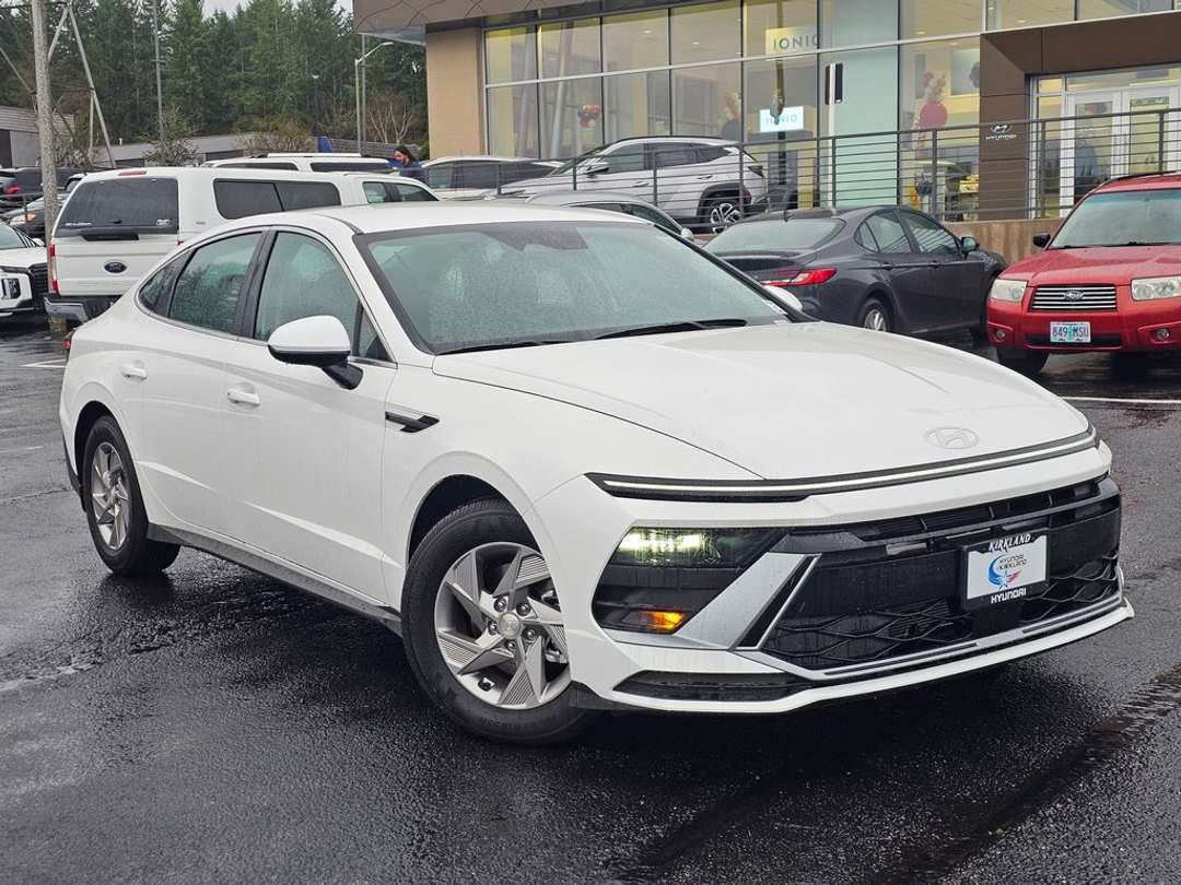 2025 Hyundai Sonata SEI4 8-Speed Automatic FWD 4D Sedan Serenity White Black Cloth, 16" x 6.5J Aluminum Alloy Wheels, 4-Wheel Disc Brakes, 6 Speakers, ABS brakes, Air Conditioning, Alloy wheels, AM/FM radio: SiriusXM, Apple CarPlay & Android Auto, Auto High-beam Headlights, Brake assist, Bumpers: body-color, Cargo Block, Cargo Net, Cargo Tray, Carpeted Floor Mats, Cloth Seating Surfaces, Delay-off headlights, Driver door bin, Driver vanity mirror, Dual front impact airbags, Dual front side impact airbags, Electronic Stability Control, Emergency communication system: Bluelink+, Exterior Parking Camera Rear, First Aid Kit, Four wheel independent suspension, Front anti-roll bar, Front Bucket Seats, Front Center Armrest, Front reading lights, Fully automatic headlights, Illuminated entry, Knee airbag, Low tire pressure warning, Mud Guards, Occupant sensing airbag, Option Group 01, Outside temperature display, Overhead airbag, Overhead console, Panic alarm, Passenger door bin, Passenger vanity mirror, Power door mirrors, Power steering, Power windows, Radio data system, Radio: AM/FM/HD/SiriusXM, Rear anti-roll bar, Rear side impact airbag, Rear window defroster, Remote keyless entry, Security system, Speed control, Speed-sensing steering, Speed-Sensitive Wipers, Split folding rear seat, Steering wheel mounted audio controls, Tachometer, Telescoping steering wheel, Tilt steering wheel, Traction control, Trip computer, Variably intermittent wipers, Black Cloth.