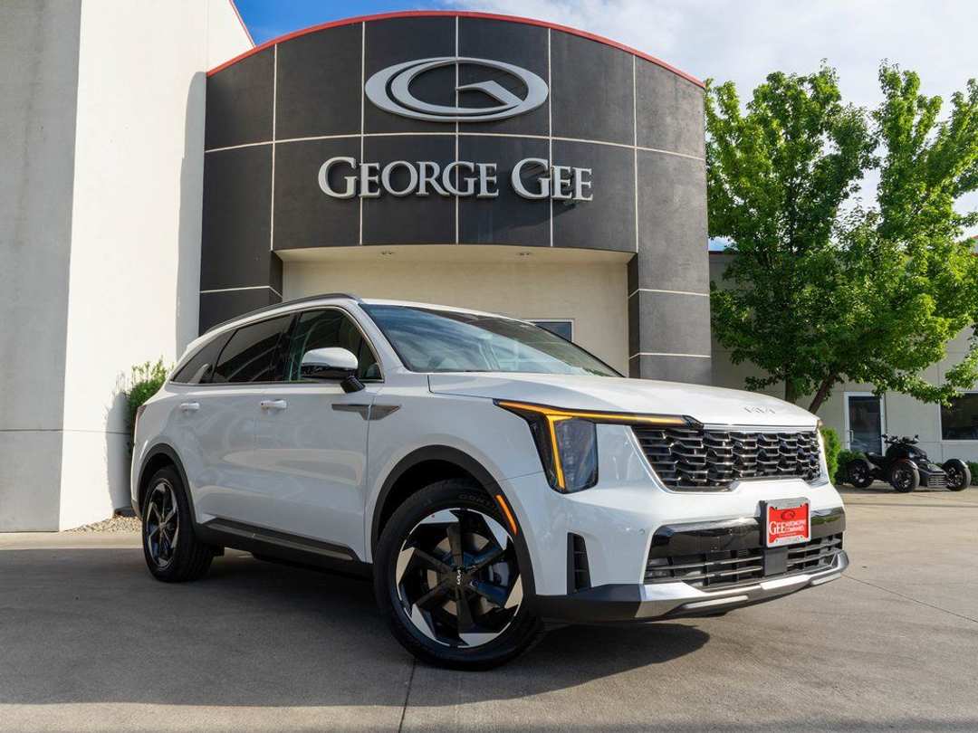 Snow White Pearl 2025 Kia Sorento Hybrid EX AWD 6-Speed Automatic 1.6L Turbo GDI 4-Cylinder 1.6L Turbo GDI 4-Cylinder, 3rd row seats: split-bench, 4-Wheel Disc Brakes, 6 Speakers, ABS brakes, Air Conditioning, All Weather Floor Mats, Alloy wheels, AM/FM radio: SiriusXM, Apple CarPlay & Android Auto, Auto High-beam Headlights, Auto-Dimming Mirror w/HomeLink (PnP), Automatic temperature control, Brake assist, Bumpers: body-color, Delay-off headlights, Driver door bin, Driver vanity mirror, Dual front impact airbags, Dual front side impact airbags, Electronic Stability Control, Emergency communication system: 911 Connect, Exterior Parking Camera Rear, Four wheel independent suspension, Front anti-roll bar, Front Bucket Seats, Front Center Armrest, Front dual zone A/C, Front fog lights, Front reading lights, Fully automatic headlights, Heated door mirrors, Heated Front Bucket Seats, Heated front seats, Illuminated entry, Knee airbag, Leather steering wheel, Low tire pressure warning, Navigation System, Occupant sensing airbag, Outside temperature display, Overhead airbag, Overhead console, Panic alarm, Passenger door bin, Passenger vanity mirror, Power door mirrors, Power driver seat, Power Liftgate, Power passenger seat, Power steering, Power windows, Radio data system, Radio: AM/FM/SiriusXM Audio System, Rear air conditioning, Rear anti-roll bar, Rear reading lights, Rear window defroster, Rear window wiper, Remote keyless entry, Security system, Speed control, Speed-sensing steering, Split folding rear seat, Spoiler, Steering wheel mounted audio controls, SynTex Artificial Leather Seat Trim, Tachometer, Telescoping steering wheel, Tilt steering wheel, Traction control, Trip computer, Turn signal indicator mirrors, Variably intermittent wipers, Wheels: 19" Machine-Finished Aero Alloy, 1.6L Turbo GDI 4-Cylinder.34/34 City/Highway MPG