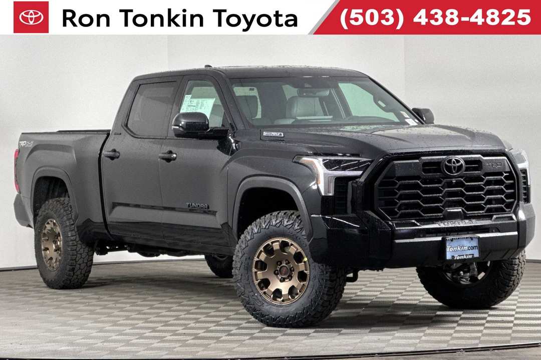 Dealer Installed Equipment $4499TrailHunter Wheels35" Falken WildPeak Tires2025 Toyota Tundra Hybrid 3.4L V6 10-Speed Automatic 4WD Limited Tonkin EastSide Custom 4D CrewMax Midnight Black 20" x 8" Alloy Wheels, 3.31 Axle Ratio, 3" Lift Kit, 4-Wheel Disc Brakes, 9 Speakers, ABS brakes, Air Conditioning, All Weather Floor Liners (TMS), Alloy wheels, AM/FM radio: SiriusXM, Apple CarPlay/Android Auto, Auto High-beam Headlights, Auto-dimming door mirrors, Auto-dimming Rear-View mirror, Automatic temperature control, Bed Step (TMS), Black Front Bumper Letters (TMS), Blind Spot Monitor, Brake assist, Bumpers: body-color, Delay-off headlights, Driver door bin, Driver vanity mirror, Dual front impact airbags, Dual front side impact airbags, Electronic Stability Control, Emergency communication system: Safety Connect (10-year trial), Exterior Parking Camera Rear, Front & Rear Mud Guards, Front anti-roll bar, Front Bucket Seats, Front Center Armrest, Front dual zone A/C, Front Fog & Driving Lamp, Front fog lights, Front reading lights, Front wheel independent suspension, Fully automatic headlights, Garage door transmitter: HomeLink, Heated & Ventilated Front Bucket Seats, Heated door mirrors, Heated front seats, Heated Leather Steering Wheel, Heated Power Folding Color-Keyed Outside Mirrors, Heated steering wheel, Illuminated entry, Knee airbag, Leather Shift Knob, Leather steering wheel, Low tire pressure warning, Memory seat, Multi-Terrain Back Monitor, Navigation System, Occupant sensing airbag, Outside temperature display, Overhead airbag, Overhead console, Panic alarm, Panoramic View Back Monitor, Passenger door bin, Passenger vanity mirror, Power door mirrors, Power driver seat, Power passenger seat, Power steering, Power windows, Radio data system, Radio: Audio Plus, Radio: Premium Audio w/JBL, Rear reading lights, Rear seat center armrest, Rear step bumper, Rear window defroster, Remote keyless entry, Security system, SofTex Seat Trim, Speed control, Speed-sensing steering, Split folding rear seat, Steering wheel mounted audio controls, Tachometer, Tailgate Insert - Black (TMS), Telescoping steering wheel, Tilt steering wheel, Traction control, TRD Off-Road Package, TRD Performance Package (TMS), Trip computer, Turn signal indicator mirrors, Variably intermittent wipers, Ventilated front seats, Voltmeter, Wheels: 20" x 8.5" Black Alloy. 19/22 City/Highway MPGSome factory rebates may require factory financing, some special finance or lease rates are in lieu of factory rebates of specific make or model vehicles. Tax, title, licensing, documentation fee of $200, and dealer installed accessories are not included. Prices not available for Fleet or Commercial business's. Please confirm the accuracy of the included equipment by calling us prior to purchase. Price does not include Tax, Title, and License. Price includes: $5000 - TMS Customer Cash . Exp. 05/01/2026 Price includes dealer added accessories.