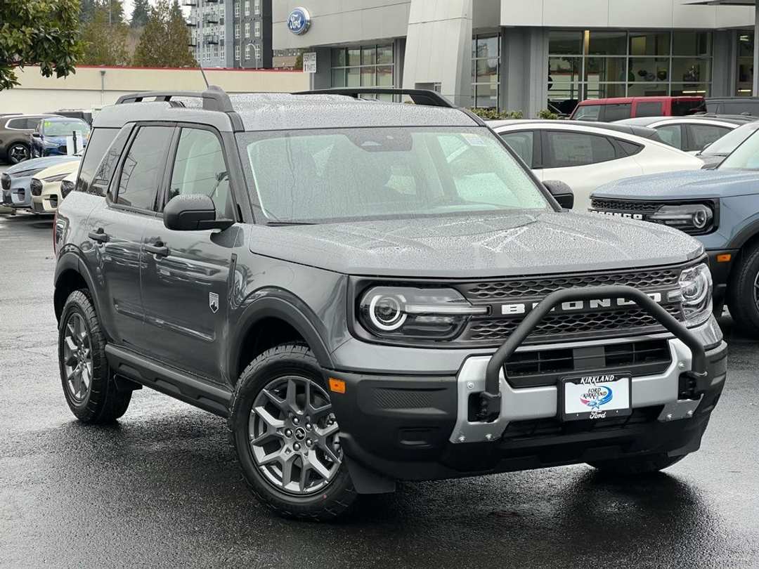 2026 Ford Bronco Sport Big Bend1.5L EcoBoost 8-Speed Automatic 4WD 4D Sport Utility Gray 2nd Row Carpeted Seatback, 4-Wheel Disc Brakes, 400W Pro Power Onboard, 6 Speakers, ABS brakes, Air Conditioning, Alloy wheels, AM/FM radio: SiriusXM with 360L, AM/FM Stereo, Apple CarPlay/Android Auto, Auto High-beam Headlights, Automatic temperature control, Auxiliary Switches and Wiring, Black Diamond Off-Road Package, Brake assist, Class II Trailer Tow Package with Trailer Sway Control, Cloth with Easy-to-Clean Front Bucket Seats, Compass, Delay-off headlights, Driver door bin, Driver vanity mirror, Dual front impact airbags, Dual front side impact airbags, Electronic Stability Control, Emergency communication system: SYNC 4 911 Assist, Exterior Parking Camera Rear, Ford Connectivity Package (1-Year Included), Four wheel independent suspension, Front anti-roll bar, Front Black Molded-in-Color (MIC) Bumper, Front Brush Guard, Front Bucket Seats, Front Center Armrest, Front License Plate Bracket, Front reading lights, Fully automatic headlights, Heated door mirrors, Illuminated entry, Internet access capable: 5G Modem - Ford Connectivity Package, Knee airbag, Low tire pressure warning, Occupant sensing airbag, Outside temperature display, Overhead airbag, Overhead console, Panic alarm, Passenger door bin, Passenger vanity mirror, Power door mirrors, Power steering, Power windows, Radio data system, Rear anti-roll bar, Rear Parking Sensors, Rear reading lights, Rear seat center armrest, Rear window defroster, Rear window wiper, Remote keyless entry, Security system, SiriusXM with 360L, Speed control, Speed-sensing steering, Speed-Sensitive Wipers, Split folding rear seat, Steering wheel mounted audio controls, SYNC 4 with Enhanced Voice Recognition, Tachometer, Telescoping steering wheel, Tilt steering wheel, Traction control, Trip computer, Variably intermittent wipers, Wheels: 17" Carbonized Gray Painted Aluminum, Wheels: 17" Carbonized Gray-Painted Aluminum. To see more quality vehicles like this one right here just click on http://www.fordofkirkland.com or dial (425) 500-1074.