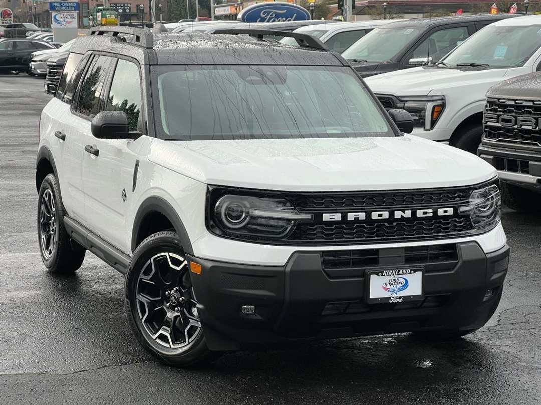 2026 Ford Bronco Sport Outer Banks1.5L EcoBoost 8-Speed Automatic 4WD 4D Sport Utility White 2nd Row Carpeted Seatback, 4-Wheel Disc Brakes, 6 Speakers, ABS brakes, Air Conditioning, Alloy wheels, AM/FM radio: SiriusXM with 360L, AM/FM Stereo, Apple CarPlay/Android Auto, Auto High-beam Headlights, Auto-dimming Rear-View mirror, Automatic temperature control, Brake assist, Compass, Delay-off headlights, Driver door bin, Driver vanity mirror, Dual front impact airbags, Dual front side impact airbags, Electronic Stability Control, Emergency communication system: SYNC 4 911 Assist, Exterior Parking Camera Rear, Ford Connectivity Package (1-Year Included), Four wheel independent suspension, Front anti-roll bar, Front Bucket Seats, Front Center Armrest, Front Driver/Passenger Seat Back Map Pockets, Front dual zone A/C, Front fog lights, Front License Plate Bracket, Front reading lights, Fully automatic headlights, Heated door mirrors, Heated front seats, Heated steering wheel, Illuminated entry, Internet access capable: 5G Modem - Ford Connectivity Package, Knee airbag, Low tire pressure warning, Memory seat, Occupant sensing airbag, Outside temperature display, Overhead airbag, Overhead console, Panic alarm, Passenger door bin, Passenger vanity mirror, Power door mirrors, Power driver seat, Power passenger seat, Power steering, Power windows, Radio data system, Rear anti-roll bar, Rear Parking Sensors, Rear reading lights, Rear seat center armrest, Rear window defroster, Rear window wiper, Remote keyless entry, Security system, SiriusXM with 360L, Speed control, Speed-sensing steering, Speed-Sensitive Wipers, Split folding rear seat, Steering wheel mounted audio controls, SYNC 4 with Enhanced Voice Recognition, Tachometer, Telescoping steering wheel, Tilt steering wheel, Traction control, Trip computer, Variably intermittent wipers, Wheels: 18" Ebony Black. To see more quality vehicles like this one right here just click on http://www.fordofkirkland.com or dial (425) 500-1074.