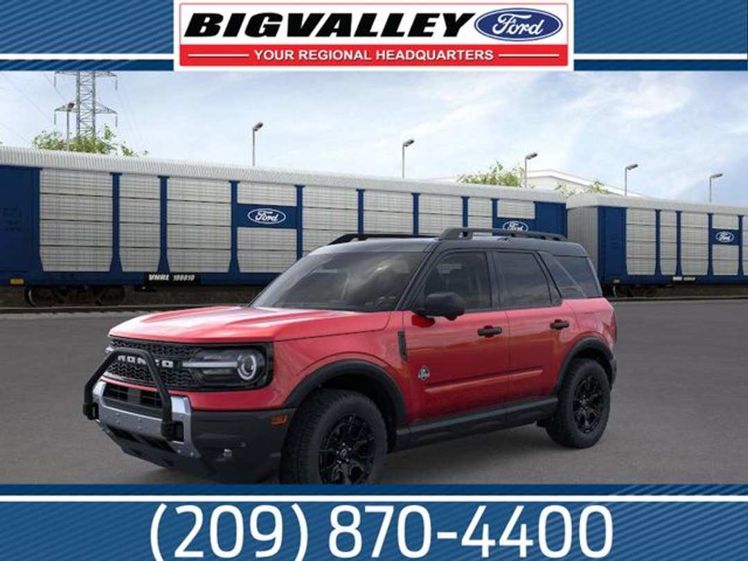 Ruby Red 2026 Ford Bronco Sport Outer Banks 4WD 8-Speed Automatic 1.5L EcoBoost 12.3" Cluster Display, 2 Rear D-Ring Recovery Hooks, 2nd Row Carpeted Seatback, 360-Degree Camera with Trail View, 4-Wheel Disc Brakes, 400W Pro Power Onboard, 6 Speakers, ABS brakes, Air Conditioning, Alloy wheels, AM/FM radio: SiriusXM with 360L, AM/FM Stereo, Apple CarPlay/Android Auto, Auto High-beam Headlights, Auto-dimming Rear-View mirror, Automatic temperature control, Auxiliary Switches and Wiring, Brake assist, Class II Trailer Tow Package with Trailer Sway Control, Compass, Connected Navigation (1-Year Included), Delay-off headlights, Driver door bin, Driver vanity mirror, Dual front impact airbags, Dual front side impact airbags, Electronic Stability Control, Emergency communication system: SYNC 4 911 Assist, Equipment Group 300A Standard Package, Exterior Parking Camera Rear, Ford Connectivity Package (1-Year Included), Four wheel independent suspension, Front and Rear Black Bumpers with Steel Plates, Front anti-roll bar, Front Brush Guard with Integrated Recovery Hooks, Front Bucket Seats, Front Center Armrest, Front Driver/Passenger Seat Back Map Pockets, Front dual zone A/C, Front fog lights, Front License Plate Bracket, Front Parking Sensors, Front reading lights, Fully automatic headlights, Heated door mirrors, Heated front seats, Heated steering wheel, High Clearance Fender Flares, HOSS 2.0 Off-Road Suspension, Illuminated entry, Internet access capable: 5G Modem - Ford Connectivity Package, Knee airbag, Low tire pressure warning, Memory seat, Occupant sensing airbag, Outer Banks Tech Package+, Outside temperature display, Overhead airbag, Overhead console, Panic alarm, Passenger door bin, Passenger vanity mirror, Power door mirrors, Power driver seat, Power Moonroof, Power passenger seat, Power steering, Power windows, Radio data system, Radio: HD w/B&O Sound System by Bang & Olufsen, Rear anti-roll bar, Rear Parking Sensors, Rear reading lights, Rear seat center armrest, Rear window defroster, Rear window wiper, Remote keyless entry, Reverse Brake Assist, Rubberized Flooring, Sasquatch Outer Banks Package, Security system, SiriusXM with 360L, SiriusXM with 360L (3-Year Plan), Speed control, Speed-sensing steering, Speed-Sensitive Wipers, Split folding rear seat, Steering wheel mounted audio controls, SYNC 4 with Enhanced Voice Recognition, Tachometer, Telescoping steering wheel, Tilt steering wheel, Traction control, Trail Control with Trail One-Pedal Drive, Trip computer, Variably intermittent wipers, Wheels: 17" Ebony Black-Painted Aluminum, Wheels: 18" Ebony Black.25/30 City/Highway MPG