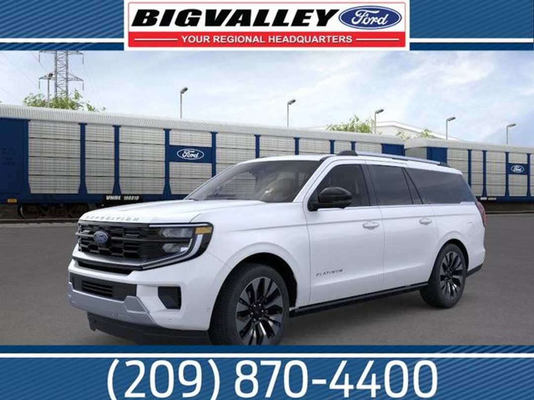 White 2026 Ford Expedition Max Platinum 4WD 10-Speed Automatic EcoBoost 3.5L V6 GTDi DOHC 24V Twin Turbocharged 10 Speakers, 2nd Row Power-Folding 40/20/40 Bench Seat, 2nd Row Power-Folding Captain's Chairs, 3.73 Axle Ratio, 3rd row seats: split-bench, 4-Wheel Disc Brakes, ABS brakes, Air Conditioning, Alloy wheels, AM/FM radio: SiriusXM with 360L, Apple CarPlay/Android Auto, Auto High-beam Headlights, Auto-dimming door mirrors, Auto-dimming Rear-View mirror, Automatic temperature control, Black Onyx Painted Power Deployable Running Boards, BlueCruise (equipment + 1-Year + 90-Day Plan), BlueCruise Equipped (90-Day Trial), Brake assist, Bumpers: body-color, Compass, Console Vault, Delay-off headlights, Driver door bin, Driver vanity mirror, Driver's Package, Dual front impact airbags, Dual front side impact airbags, Electronic Stability Control, Emergency communication system: 911 Assist, Equipment Group 600A Standard Package, Exterior Parking Camera Rear, Ford Connectivity Package (1-Time Purchase), Ford Connectivity Package (1-Year Included), Ford Digital Experience, Four wheel independent suspension, Front and 2nd Rows Floor Liners (tray Style), Front anti-roll bar, Front Bucket Seats, Front Center Armrest, Front dual zone A/C, Front License Plate Bracket, Front reading lights, Fully automatic headlights, Garage door transmitter, Genuine wood dashboard insert, Genuine wood door panel insert, Heated and Ventilated Leather Front Captain's Chairs, Heated door mirrors, Heated front seats, Heated rear seats, Heated steering wheel, Illuminated entry, Intersection Assist, Leather steering wheel, Low tire pressure warning, Memory seat, Navigation System, Occupant sensing airbag, Outside temperature display, Overhead airbag, Overhead console, Panic alarm, Passenger door bin, Passenger vanity mirror, Power door mirrors, Power driver seat, Power moonroof: Vista Roof, Power passenger seat, Power steering, Power Tilt/Telescopic Steering Wheel with Memory, Power windows, Radio data system, Radio: B&O Play Unleashed, Radio: B&O Sound System by Bang and Olufsen, Rain sensing wipers, Rear air conditioning, Rear anti-roll bar, Rear reading lights, Rear window defroster, Rear window wiper, Rear-Seat Entertainment, Reclining 3rd row seat, Remote keyless entry, Security system, SiriusXM with 360L, SiriusXM with 360L (3-Year Plan), Speed control, Speed-sensing steering, Speed-Sensitive Wipers, Split folding rear seat, Spoiler, Steering wheel memory, Steering wheel mounted audio controls, Tachometer, Telescoping steering wheel, Tilt steering wheel, Traction control, Trip computer, Turn signal indicator mirrors, Variably intermittent wipers, Ventilated front seats, Voltmeter, Wheels: 20" x 8.5" Ebony Bright Machined Aluminum, Wheels: 22" x 9.0" Ebony Bright Machined Face Aluminum.