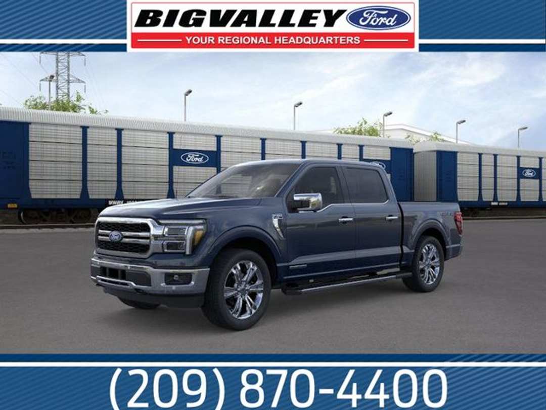 Blue 2026 Ford F-150 Lariat 4WD 10-Speed Automatic 3.5L PowerBoost Full-Hybrid V6 2nd Row Heated Seats, 4-Wheel Disc Brakes, 8 Speakers, ABS brakes, Air Conditioning, Alloy wheels, AM/FM radio: SiriusXM with 360L, Ambient Lighting - Ice Blue Color Only, Auto High-beam Headlights, Auto-dimming door mirrors, Auto-dimming Rear-View mirror, Automatic temperature control, Brake assist, Bumpers: chrome, Chrome wheels, Compass, Console Worksurface, Delay-off headlights, Driver door bin, Driver vanity mirror, Dual front impact airbags, Dual front side impact airbags, Electronic Stability Control, Emergency communication system: SYNC 4 911 Assist, Equipment Group 502A High, Ford Connectivity Package (1-Year Included), Front anti-roll bar, Front Bucket Seats, Front Center Armrest, Front dual zone A/C, Front fog lights, Front License Plate Bracket, Front reading lights, Front wheel independent suspension, Fully automatic headlights, Garage door transmitter, Head-Up Display, Heated door mirrors, Heated front seats, Heated steering wheel, Illuminated Driver and Passenger Visors, Illuminated entry, Integrated Trailer Brake Controller, Internet access capable: 5G Modem - Ford Connectivity Package, Low tire pressure warning, Memory seat, Mobile Office Package, Navigation system: Connected Navigation, Occupant sensing airbag, Outside temperature display, Overhead airbag, Overhead console, Panic alarm, Partitioned Lockable Rear Storage, Passenger door bin, Passenger vanity mirror, Power door mirrors, Power driver seat, Power passenger seat, Power steering, Power windows, Power-Adjustable Pedals with Memory, Power-Sliding Rear Window, Radio data system, Radio: B&O Sound System by Bang and Olufsen, Radio: B&O Unleashed Sound System by Bang & Olufsen, Rain sensing wipers, Rear reading lights, Rear seat center armrest, Rear step bumper, Rear window defroster, Remote keyless entry, Security system, SiriusXM with 360L (3-Year Plan), Speed control, Split folding rear seat, Steering wheel mounted audio controls, SYNC 4 with Enhanced Voice Recognition, Tachometer, Telescoping steering wheel, Tilt steering wheel, Tow/Haul Package, Traction control, Trip computer, Turn signal indicator mirrors, Twin Panel Moonroof, Variably intermittent wipers, Ventilated front seats, Wheels: 18" Chrome-Like PVD, Wheels: 20" Chrome-Like PVD, Wireless Charging.