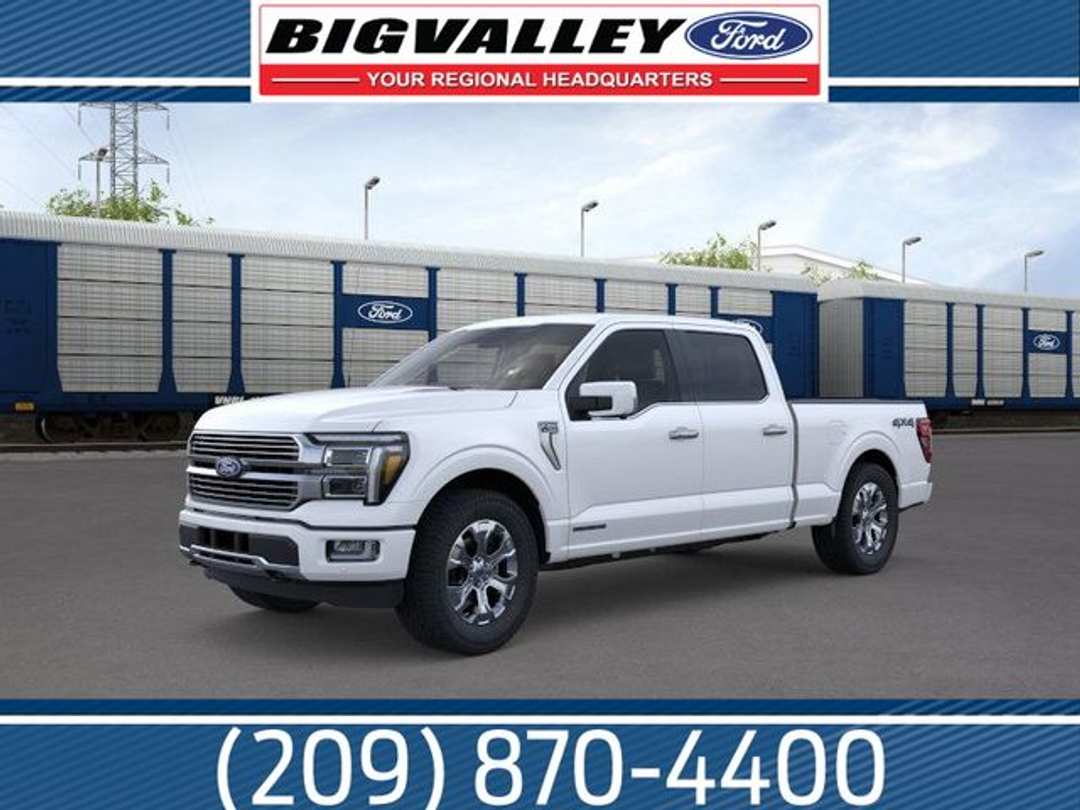 White 2026 Ford F-150 Platinum 4WD 10-Speed Automatic 3.5L PowerBoost Full-Hybrid V6 4-Wheel Disc Brakes, 8 Speakers, ABS brakes, Adjustable pedals, Air Conditioning, Alloy wheels, AM/FM radio: SiriusXM with 360L, Auto High-beam Headlights, Auto tilt-away steering wheel, Auto-dimming door mirrors, Auto-dimming Rear-View mirror, Automatic temperature control, Brake assist, Bumpers: body-color, Compass, Delay-off headlights, Driver door bin, Driver vanity mirror, Dual front impact airbags, Dual front side impact airbags, Electronic Locking with 3.55 Axle Ratio, Electronic Stability Control, Emergency communication system: SYNC 4 911 Assist, Equipment Group 700A Standard, Ford Connectivity Package (1-Year Included), Front anti-roll bar, Front Bucket Seats, Front Center Armrest, Front dual zone A/C, Front fog lights, Front License Plate Bracket, Front reading lights, Front wheel independent suspension, Fully automatic headlights, Garage door transmitter, GVWR: 7,400 lbs Payload Package, Heated door mirrors, Heated front seats, Heated rear seats, Heated steering wheel, Illuminated entry, Internet access capable: 5G Modem - Ford Connectivity Package, Leather steering wheel, Low tire pressure warning, Memory seat, Navigation system: Connected Navigation, Occupant sensing airbag, Outside temperature display, Overhead airbag, Overhead console, Panic alarm, Passenger door bin, Passenger vanity mirror, Pedal memory, Platinum Satin Appearance Package, Power door mirrors, Power driver seat, Power passenger seat, Power steering, Power windows, Pro Access Tailgate, Radio data system, Radio: B&O Sound System by Bang and Olufsen, Rain sensing wipers, Rear reading lights, Rear seat center armrest, Rear step bumper, Rear window defroster, Remote keyless entry, Satin Single Exhaust, Security system, Speed control, Split folding rear seat, Steering wheel memory, Steering wheel mounted audio controls, SYNC 4 with Enhanced Voice Recognition, Tachometer, Telescoping steering wheel, Tilt steering wheel, Traction control, Tray Style Floor Liner, Trip computer, Turn signal indicator mirrors, Unique Multi-Contour Leather Bucket Seats, Variably intermittent wipers, Ventilated front seats, Wheels: 20" Painted Gloss Ebony Black.Recent Arrival!