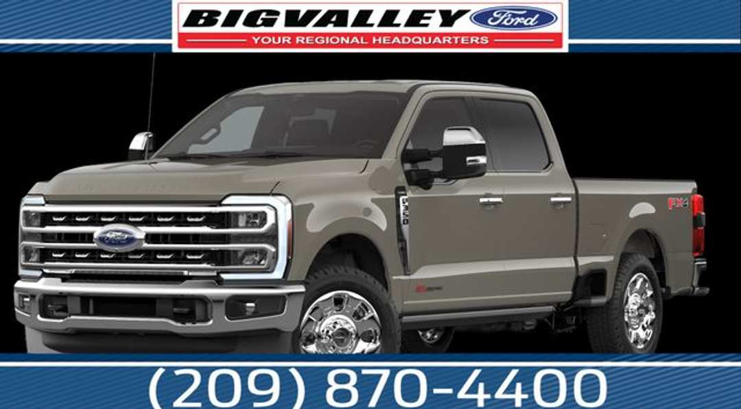 Gray 2026 Ford F-350SD Lariat 4WD 10-Speed Automatic 6.7L High Output Power Stroke V8 Diesel 190 Amp Alternator, 4-Wheel Disc Brakes, 8 Speakers, ABS brakes, Adjustable pedals, Air Conditioning, All-Weather Floor Mats, Alloy wheels, AM/FM radio: SiriusXM with 360L, Auto High-beam Headlights, Auto-dimming Rear-View mirror, Automatic temperature control, BLIS with Cross-Traffic Alert, Brake assist, Bumpers: chrome, Chrome Package, Compass, Delay-off headlights, Driver door bin, Driver vanity mirror, Dual AGM 68 AH Battery, Dual front impact airbags, Dual front side impact airbags, Electronic Stability Control, Emergency communication system: SYNC 4 911 Assist, Flow-Through Console, Ford Connectivity Package (1-Year Included), Front ActiveX Trimmed 40/Console/40 Seats, Front anti-roll bar, Front Bucket Seats, Front Center Armrest, Front dual zone A/C, Front fog lights, Front License Plate Bracket, Front reading lights, Fully automatic headlights, FX4 Off-Road Package, Garage door transmitter, Heated door mirrors, Heated front seats, Heated rear seats, Heated steering wheel, Hill Descent Control, Illuminated entry, Internet access capable: 5G Modem - Ford Connectivity Package, Low tire pressure warning, Memory seat, Navigation system: Connected Navigation, Off-Road Specifically Tuned Shock Absorbers, Order Code 618A, Outside temperature display, Overhead airbag, Overhead console, Panic alarm, Passenger door bin, Passenger vanity mirror, Pedal memory, Power door mirrors, Power driver seat, Power passenger seat, Power steering, Power windows, Power-Deployable Running Boards, Privacy Glass, Radio: B&O Sound System by Bang and Olufsen, Rain sensing wipers, Rear Parking Sensors, Rear reading lights, Rear seat center armrest, Rear step bumper, Rear window defroster, Remote keyless entry, SecuriCode Keyless Entry Keypad (driver's Side), Security system, SiriusXM with 360L, Speed control, Split folding rear seat, Steering wheel mounted audio controls, SYNC 4 with Enhanced Voice Recognition, Tachometer, Telescoping steering wheel, Tilt steering wheel, Traction control, Trip computer, Turn signal indicator mirrors, Unique FX4 Off-Road Box Decal, Variably intermittent wipers, Ventilated front seats, Wheels: 18" Bright Machined and Carbonized Gray Aluminum.