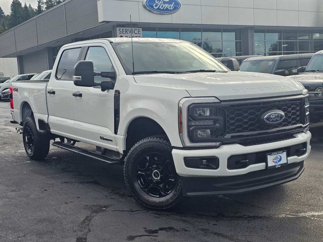 2026 Ford F-350SD XLPower Stroke 6.7L V8 DI 32V OHV Turbodiesel 10-Speed Automatic 4WD 4D Crew Cab Oxford White 4WD, 17" Argent Painted Steel Wheels, 360-Degree Camera, 360-Degree Camera Package, 4-Wheel Disc Brakes, 5th Wheel/Gooseneck Hitch Prep Package, 6 Speakers, ABS brakes, Air Conditioning, AM/FM radio, Automatic High Beam, BLIS with Cross-Traffic Alert, Body-Color Front Bumper, Body-Color Rear Bumper, Brake assist, Cloth 40/20/40 Split Bench Seat, Color-Coordinated Full Carpet with Floor Mats, Compass, Delay-off headlights, Dual AGM 68 AH Battery, Dual front impact airbags, Dual front side impact airbags, Electronic Stability Control, Emergency communication system: SYNC 4 911 Assist, Engine Block Heater, Exterior Parking Camera Rear, Ford Connectivity Package (1-Year Included), Front anti-roll bar, Front Center Armrest w/Storage, Front License Plate Bracket, Front reading lights, Fully automatic headlights, HD Vinyl 40/20/40 Split Bench Seat, Heated door mirrors, Illuminated entry, Interior Work Surface, Internet access capable: 5G Modem - Ford Connectivity Package, LED Center High-Mounted Stop Lamp (CHMSL) Camera, LED Fog Lamps, Low tire pressure warning, Order Code 610A, Outside temperature display, Overhead airbag, Overhead console, Painted Grille, Panic alarm, Passenger vanity mirror, Platform Running Boards, Power door mirrors, Power steering, Power windows, Power-Sliding Rear-Window with Defrost, Pre-Collision Assist, Privacy Glass, Pro Power Onboard - 2kW, Radio: AM/FM Stereo with MP3 Player, Rear Parking Sensors, Rear reading lights, Rear step bumper, Remote keyless entry, Security system, Speed control, Split folding rear seat, Steering wheel mounted audio controls, STX Appearance Package, SYNC 4, Tachometer, Telescoping steering wheel, Tilt steering wheel, Tough Bed Spray-in Bedliner, Traction control, Trailer Brake Controller, Trip computer, Turn signal indicator mirrors, Upfitter Switches (6), Variably intermittent wipers, Wheels: 18" Ebony Black Painted Aluminum, XL Driver Assist Package, 4WD. To see more quality vehicles like this one right here just click on http://www.fordofkirkland.com or dial (425) 500-1074. Prices good through 5-31-2025. Kirkland Price includes:$1000 - Retail Customer Cash $500 - Final Days Retail Customer Cash