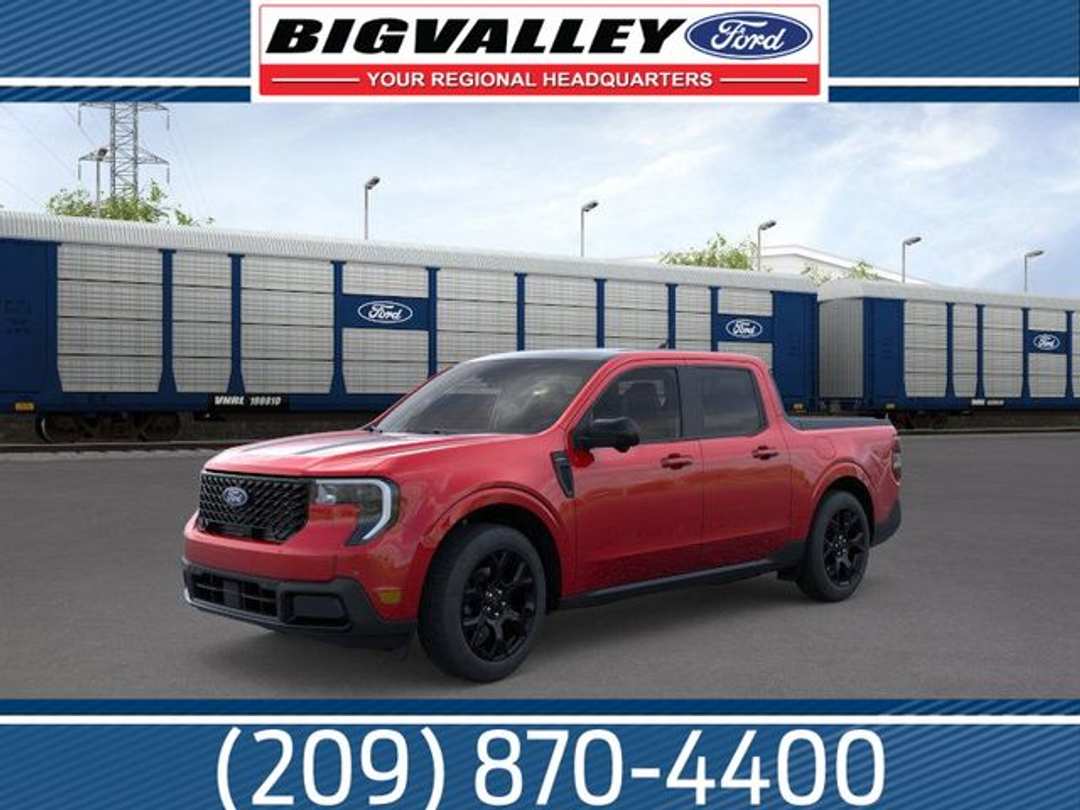 Ruby Red 2026 Ford Maverick Lariat AWD 8-Speed Automatic EcoBoost 2.0L I4 GTDi DOHC Turbocharged VCT 2.91 Axle Ratio, 4-Wheel Disc Brakes, 4K Tow Package, 8 Speakers, ABS brakes, ActiveX Trimmed Heated Front Bucket Seats, Air Conditioning, Alloy wheels, AM/FM radio: SiriusXM with 360L, Apple CarPlay/Android Auto, Auto High-beam Headlights, Automatic temperature control, Bed Extender, Black Appearance Package, Black Grille, Black Interior Accents, Brake assist, Bumpers: body-color, Compass, Delay-off headlights, Driver door bin, Driver vanity mirror, Dual front impact airbags, Dual front side impact airbags, Electronic Stability Control, Emergency communication system: SYNC 4 911 Assist, Equipment Group 502A, Exterior Parking Camera Rear, Ford Connectivity Package (1-Year Included), Ford Connectivity Package (one-Time Purchase - 7 Years), Four wheel independent suspension, Front and Rear Floor Liners with Front Carpet Floor Mats, Front anti-roll bar, Front Bucket Seats, Front Center Armrest, Front dual zone A/C, Front reading lights, Fully automatic headlights, Heated door mirrors, Heated front seats, Heated steering wheel, Illuminated entry, Internet access capable: 5G Modem - Ford Connectivity Package, Knee airbag, Low tire pressure warning, Navigation system: Connected Navigation, Occupant sensing airbag, Outside temperature display, Overhead airbag, Overhead console, Panic alarm, Passenger door bin, Passenger vanity mirror, Power door mirrors, Power driver seat, Power Moonroof, Power steering, Power windows, Power-Sliding Rear Window, Radio data system, Radio: B&O Sound System by Bang and Olufsen, Rear anti-roll bar, Rear seat center armrest, Rear step bumper, Remote keyless entry, Security system, SiriusXM with 360L, SiriusXM with 360L (3-Year Plan), Speed control, Speed-sensing steering, Steering wheel mounted audio controls, SYNC 4 with Enhanced Voice Recognition, Telescoping steering wheel, Tilt steering wheel, Traction control, Trailer Brake Controller, Trailer Hitch (class III) 2" Receiver, Trip computer, Upgraded Cooling Fan, Wheels: 19" Black Painted Aluminum, Wheels: 19" Machined Aluminum Painted.22/30 City/Highway MPG