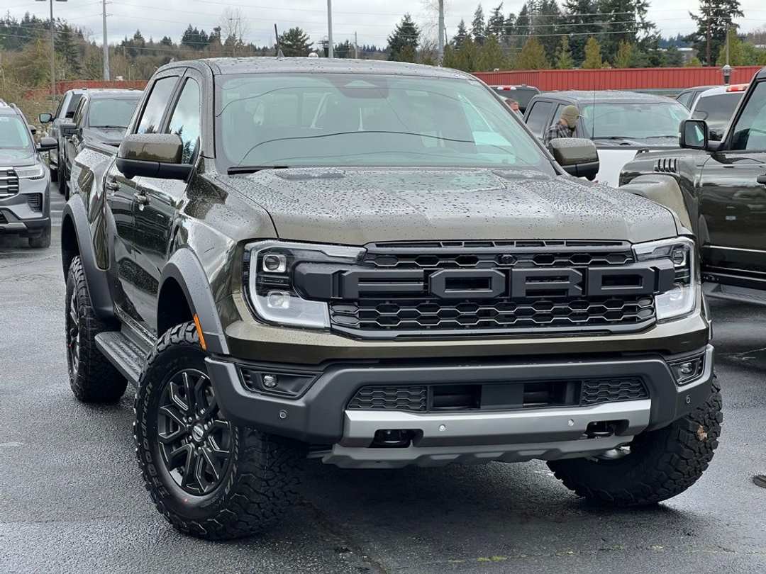 2026 Ford Ranger Raptor3.0L EcoBoost V6 10-Speed Automatic 4WD 4D Crew Cab Green 4WD, 10 Speakers, 4-Wheel Disc Brakes, 4.27 Axle Ratio, ABS brakes, Air Conditioning, Alloy wheels, AM/FM radio: SiriusXM with 360L, Auto High-beam Headlights, Auto-dimming Rear-View mirror, Automatic temperature control, Brake assist, Compass, Delay-off headlights, Driver door bin, Driver vanity mirror, Dual front impact airbags, Dual front side impact airbags, Electronic Stability Control, Emergency communication system: SYNC 4 911 Assist, Front anti-roll bar, Front Bucket Seats, Front Center Armrest, Front dual zone A/C, Front fog lights, Front License Plate Bracket, Front reading lights, Front wheel independent suspension, Fully automatic headlights, Garage door transmitter, Heated door mirrors, Heated front seats, Heated steering wheel, Illuminated entry, Leather Shift Knob, Leather steering wheel, Leather-Trimmed Front Heated Bucket Seats, Low tire pressure warning, Memory seat, Navigation system: Connected Navigation, Occupant sensing airbag, Outside temperature display, Overhead airbag, Overhead console, Panic alarm, Passenger door bin, Passenger vanity mirror, Power door mirrors, Power driver seat, Power passenger seat, Power steering, Power windows, Radio: B&O Sound System by Bang and Olufsen, Rain sensing wipers, Rear reading lights, Rear seat center armrest, Rear step bumper, Rear window defroster, Remote keyless entry, Security system, SiriusXM with 360L and 3-Month Trial Subscription, Speed control, Speed-sensing steering, Steering wheel mounted audio controls, SYNC 4A, Telescoping steering wheel, Tilt steering wheel, Traction control, Trip computer, Turn signal indicator mirrors, Variably intermittent wipers, Voltmeter, Wheels: 17 Inch Gray-Painted Aluminum Alloy, 4WD. To see more quality vehicles like this one right here just click on http://www.fordofkirkland.com or dial (425) 500-1074.