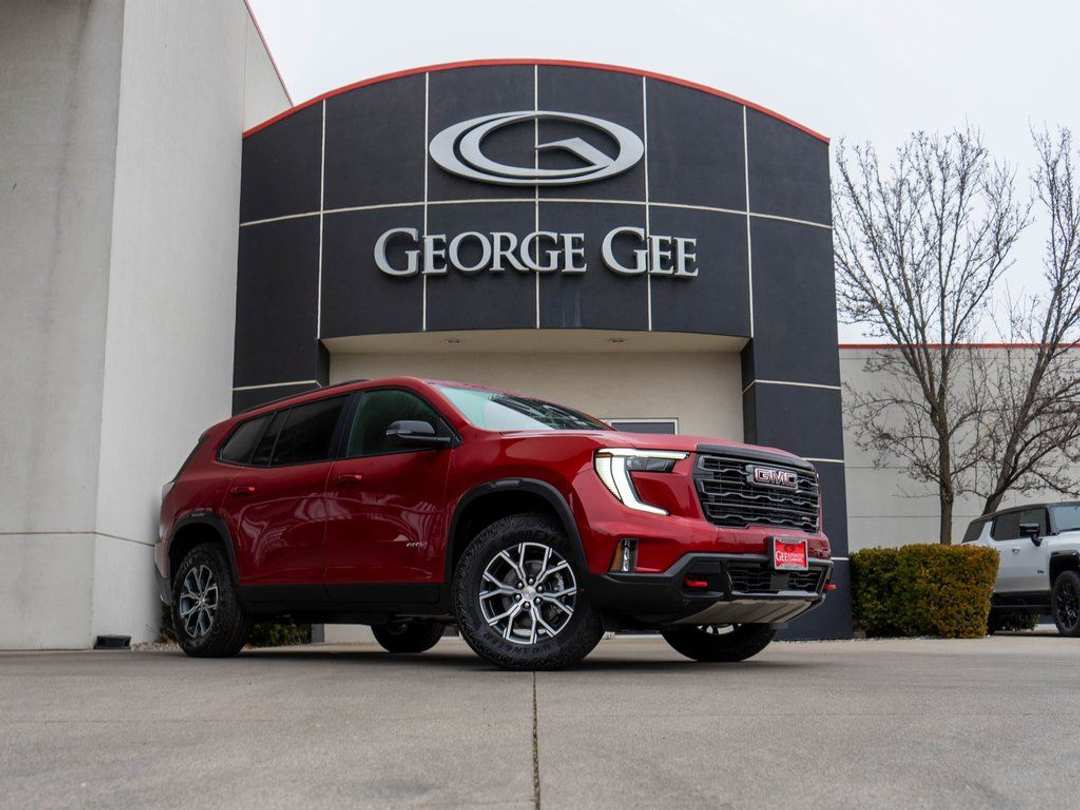 Volcanic Red Tintcoat 2026 GMC Acadia AT4 AWD 8-Speed Automatic 2.5L DOHC AWD, Forest Storm W/Mahogany Accents Cloth, 12 Speakers, 3.49 Final Drive Axle Ratio, 3rd row seats: split-bench, 4-Wheel Disc Brakes, 6-Way Power Front Passenger Seat Adjuster, 7-Passenger Seating (2-2-3 Seating Configuration), 8-Way Power Driver Seat Adjuster, 8" Diagonal Head-Up Display, ABS brakes, Air Conditioning, Alloy wheels, AM/FM radio: SiriusXM with 360L, Apple CarPlay/Android Auto, Auto High-beam Headlights, Auto-dimming Rear-View mirror, Automatic temperature control, Bodyside moldings, Bose Premium 12-Speaker System w/Sub-Woofer, Brake assist, Bumpers: body-color, Cloth/CoreTec Seat Trim, Compass, Delay-off headlights, Driver 2-Way Power Lumbar Seat Adjuster, Driver door bin, Driver vanity mirror, Dual front impact airbags, Dual front side impact airbags, Electronic Stability Control, Emergency communication system: OnStar Services capable, Exterior Parking Camera Rear, Four wheel independent suspension, Front anti-roll bar, Front Bucket Seats, Front Center Armrest, Front dual zone A/C, Front fog lights, Front License Plate Bracket, Front Passenger Power Lumbar Seat Adjuster, Front reading lights, Fully automatic headlights, Garage door transmitter, Heated & Ventilated Driver & Front Passenger Seats, Heated door mirrors, Heated Driver & Front Passenger Seats, Heated front seats, Heated Rear Outboard Seating Positions, Heated steering wheel, Heated Wiper Park, Illuminated entry, Laminated Acoustic Glass, Leather steering wheel, Low tire pressure warning, Luxury Package, Navigation System, Occupant sensing airbag, Outside temperature display, Overhead airbag, Overhead console, Panic alarm, Panoramic Power Sunroof w/Sunshade, Passenger door bin, Passenger vanity mirror, Power door mirrors, Power driver seat, Power Liftgate, Power passenger seat, Power steering, Power windows, Preferred Equipment Group 4SB, Radio data system, Radio: 15" Premium GMC Infotainment System, Rear air conditioning, Rear anti-roll bar, Rear reading lights, Rear side impact airbag, Rear window defroster, Rear window wiper, Remote keyless entry, Security system, SiriusXM w/360L, Speed control, Speed-sensing steering, Split folding rear seat, Spoiler, Sport steering wheel, Steering wheel mounted audio controls, Tachometer, Telescoping steering wheel, Tilt steering wheel, Traction control, Trip computer, Turn signal indicator mirrors, Variably intermittent wipers, Voltmeter, Wheels: 18" x 8" Dark Machined Aluminum, AWD, Forest Storm W/Mahogany Accents Cloth.