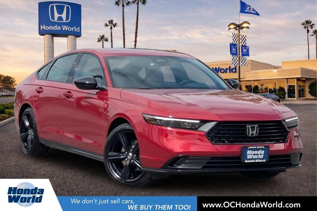 46/41 City/Highway MPG2.0L I4 DOHC 16V.Radiant Red Metallic 2026 Honda Accord Hybrid Sport-L FWD CVT 2.0L I4 DOHC 16VWE ACCEPT ALL FINANCE APPLICATIONS. LET US FIND THE BEST LOAN FOR YOU!!Print this page and call us now to schedule a test drive. We are open 7 days a week and just minutes from anywhere in Orange County. Our customers drive in from all over Southern California to take advantage of our great deals and easy buying process. Call now to speak with one of our friendly Pre-Owned Specialists. (714)890-8900.