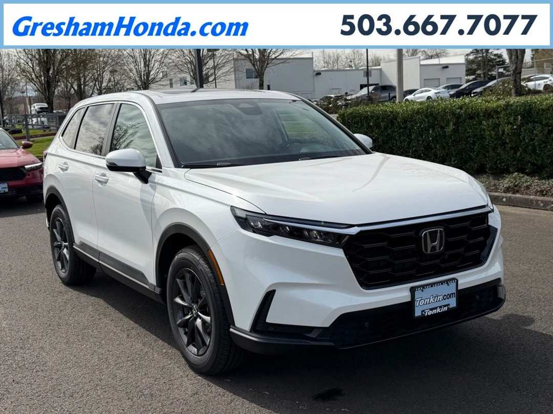 Please Note this price does not include any dealer added accessories. This vehicle is located at Tonkin Gresham Honda Please call to learn more! . 2026 Honda CR-V EX-L 4D Sport Utility 1.5L I4 DOHC 16V CVT AWD Platinum White Pearl 4-Wheel Disc Brakes, 8 Speakers, ABS brakes, Adaptive Cruise Control: Adaptive Cruise Control (ACC) with Low-Speed Follow, Air Conditioning, Alloy wheels, AM/FM radio, Apple CarPlay/Android Auto, Auto High-beam Headlights, Auto-dimming Rear-View mirror, Automatic temperature control, Blind Spot Information (BSI) System warning, Brake assist, Bumpers: body-color, Compass, Delay-off headlights, Driver door bin, Driver vanity mirror, Dual front impact airbags, Dual front side impact airbags, Electronic Stability Control, Exterior Parking Camera Rear, Four wheel independent suspension, Front anti-roll bar, Front Bucket Seats, Front Center Armrest, Front dual zone A/C, Front reading lights, Fully automatic headlights, Heated door mirrors, Heated Front Bucket Seats, Heated front seats, Illuminated entry, Knee airbag, Leather Seat Trim, Leather Shift Knob, Leather steering wheel, Low tire pressure warning, Memory seat, Occupant sensing airbag, Outside temperature display, Overhead airbag, Overhead console, Panic alarm, Passenger door bin, Passenger vanity mirror, Power door mirrors, Power driver seat, Power Liftgate, Power moonroof, Power passenger seat, Power steering, Power windows, Radio data system, Radio: 320-Watt AM/FM Audio System, Rear anti-roll bar, Rear reading lights, Rear seat center armrest, Rear side impact airbag, Rear window defroster, Rear window wiper, Remote keyless entry, Security system, Speed control, Speed-sensing steering, Speed-Sensitive Wipers, Split folding rear seat, Spoiler, Steering wheel mounted audio controls, Tachometer, Telescoping steering wheel, Tilt steering wheel, Traction control, Trip computer, Turn signal indicator mirrors, Variably intermittent wipers, Wheels: 18" Shark Grey.