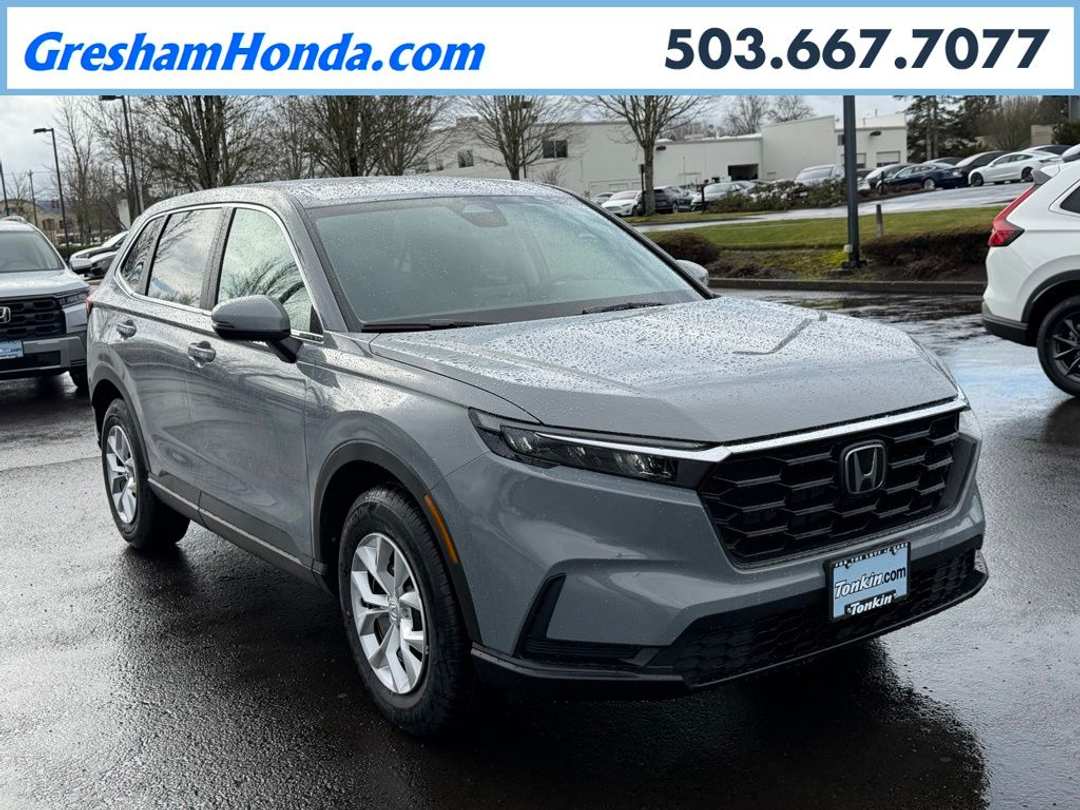 Please Note this price does not include any dealer added accessories. This vehicle is located at Tonkin Gresham Honda Please call to learn more! . 2026 Honda CR-V LX 4D Sport Utility 1.5L I4 DOHC 16V CVT AWD Urban Gray Pearl 4 Speakers, 4-Wheel Disc Brakes, ABS brakes, Adaptive Cruise Control: Adaptive Cruise Control (ACC) with Low-Speed Follow, Air Conditioning, AM/FM radio, Apple CarPlay/Android Auto, Auto High-beam Headlights, Automatic temperature control, Brake assist, Bumpers: body-color, Cloth Seat Trim, Compass, Delay-off headlights, Driver door bin, Driver vanity mirror, Dual front impact airbags, Dual front side impact airbags, Electronic Stability Control, Exterior Parking Camera Rear, Four wheel independent suspension, Front anti-roll bar, Front Bucket Seats, Front Center Armrest, Front reading lights, Fully automatic headlights, Illuminated entry, Knee airbag, Low tire pressure warning, Occupant sensing airbag, Outside temperature display, Overhead airbag, Overhead console, Panic alarm, Passenger door bin, Passenger vanity mirror, Power door mirrors, Power steering, Power windows, Radio data system, Radio: 160-Watt AM/FM Audio System, Rear anti-roll bar, Rear reading lights, Rear seat center armrest, Rear side impact airbag, Rear window defroster, Rear window wiper, Remote keyless entry, Security system, Speed control, Speed-sensing steering, Speed-Sensitive Wipers, Split folding rear seat, Spoiler, Steering wheel mounted audio controls, Tachometer, Telescoping steering wheel, Tilt steering wheel, Traction control, Trip computer, Turn signal indicator mirrors, Variably intermittent wipers, Wheels: 17" Steel with Covers.