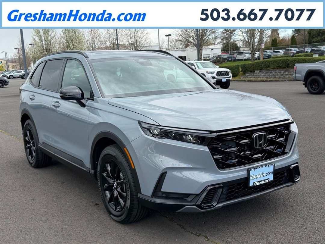 Please Note this price does not include any dealer added accessories. This vehicle is located at Tonkin Gresham Honda Please call to learn more! . 2026 Honda CR-V Hybrid Sport-L 4D Sport Utility 2.0L I4 DOHC 16V eCVT AWD Urban Gray Pearl 4-Wheel Disc Brakes, 8 Speakers, ABS brakes, Adaptive Cruise Control: Adaptive Cruise Control (ACC) with Low-Speed Follow, Air Conditioning, Alloy wheels, AM/FM radio, Apple CarPlay/Android Auto, Auto High-beam Headlights, Auto-dimming Rear-View mirror, Automatic temperature control, Blind Spot Information (BSI) System warning, Brake assist, Bumpers: body-color, Compass, Delay-off headlights, Driver door bin, Driver vanity mirror, Dual front impact airbags, Dual front side impact airbags, Electronic Stability Control, Exterior Parking Camera Rear, Four wheel independent suspension, Front anti-roll bar, Front Bucket Seats, Front Center Armrest, Front dual zone A/C, Front reading lights, Fully automatic headlights, Heated door mirrors, Heated Front Bucket Seats, Heated front seats, Illuminated entry, Knee airbag, Leather Seat Trim, Leather Shift Knob, Leather steering wheel, Low tire pressure warning, Memory seat, Occupant sensing airbag, Outside temperature display, Overhead airbag, Overhead console, Panic alarm, Passenger door bin, Passenger vanity mirror, Power door mirrors, Power driver seat, Power Liftgate, Power moonroof, Power passenger seat, Power steering, Power windows, Radio data system, Radio: 320-Watt AM/FM Audio System, Rear anti-roll bar, Rear reading lights, Rear seat center armrest, Rear side impact airbag, Rear window defroster, Rear window wiper, Remote keyless entry, Security system, Speed control, Speed-sensing steering, Speed-Sensitive Wipers, Split folding rear seat, Spoiler, Steering wheel mounted audio controls, Telescoping steering wheel, Tilt steering wheel, Traction control, Trip computer, Turn signal indicator mirrors, Variably intermittent wipers, Wheels: 18" Berlina Black.