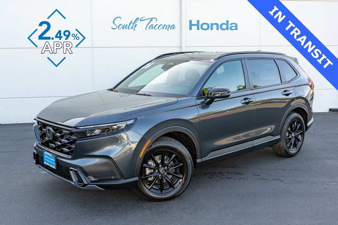 DISCOUNTED PRICING DOES NOT INCLUDE ANY DEALER INSTALLED ACCESSORIES. MAY NOT BE USED IN CONJUNCTION WITH ANY OTHER OFFERS. SEE DEALER FOR COMPLETE DETAILS. SALE PRICE EXPIRES 5/1/26. VEHICLE IS SUBJECT TO PRIOR SALE SO PLEASE CONTACT DEALER FOR AVAILABILITY. ALL OFFERS AND SALES CONTINGENT ON THE VEHICLE BEING TITLED IN WASHINGTON STATE.4-Wheel Disc Brakes, 8 Speakers, ABS brakes, Adaptive Cruise Control: Adaptive Cruise Control (ACC) with Low-Speed Follow, Air Conditioning, Alloy wheels, AM/FM radio, Apple CarPlay/Android Auto, Auto High-beam Headlights, Auto-dimming Rear-View mirror, Automatic temperature control, Blind Spot Information (BSI) System warning, Brake assist, Bumpers: body-color, Compass, Delay-off headlights, Driver door bin, Driver vanity mirror, Dual front impact airbags, Dual front side impact airbags, Electronic Stability Control, Exterior Parking Camera Rear, Four wheel independent suspension, Front anti-roll bar, Front Bucket Seats, Front Center Armrest, Front dual zone A/C, Front reading lights, Fully automatic headlights, Heated door mirrors, Heated Front Bucket Seats, Heated front seats, Illuminated entry, Knee airbag, Leather Seat Trim, Leather Shift Knob, Leather steering wheel, Low tire pressure warning, Memory seat, Occupant sensing airbag, Outside temperature display, Overhead airbag, Overhead console, Panic alarm, Passenger door bin, Passenger vanity mirror, Power door mirrors, Power driver seat, Power Liftgate, Power moonroof, Power passenger seat, Power steering, Power windows, Radio data system, Radio: 320-Watt AM/FM Audio System, Rear anti-roll bar, Rear reading lights, Rear seat center armrest, Rear side impact airbag, Rear window defroster, Rear window wiper, Remote keyless entry, Security system, Speed control, Speed-sensing steering, Speed-Sensitive Wipers, Split folding rear seat, Spoiler, Steering wheel mounted audio controls, Telescoping steering wheel, Tilt steering wheel, Traction control, Trip computer, Turn signal indicator mirrors, Variably intermittent wipers, Wheels: 18" Berlina Black.2026 Honda CR-V Hybrid Meteorite Gray Metallic Sport-L 2.0L I4 DOHC 16V eCVT AWD 4D Sport Utility