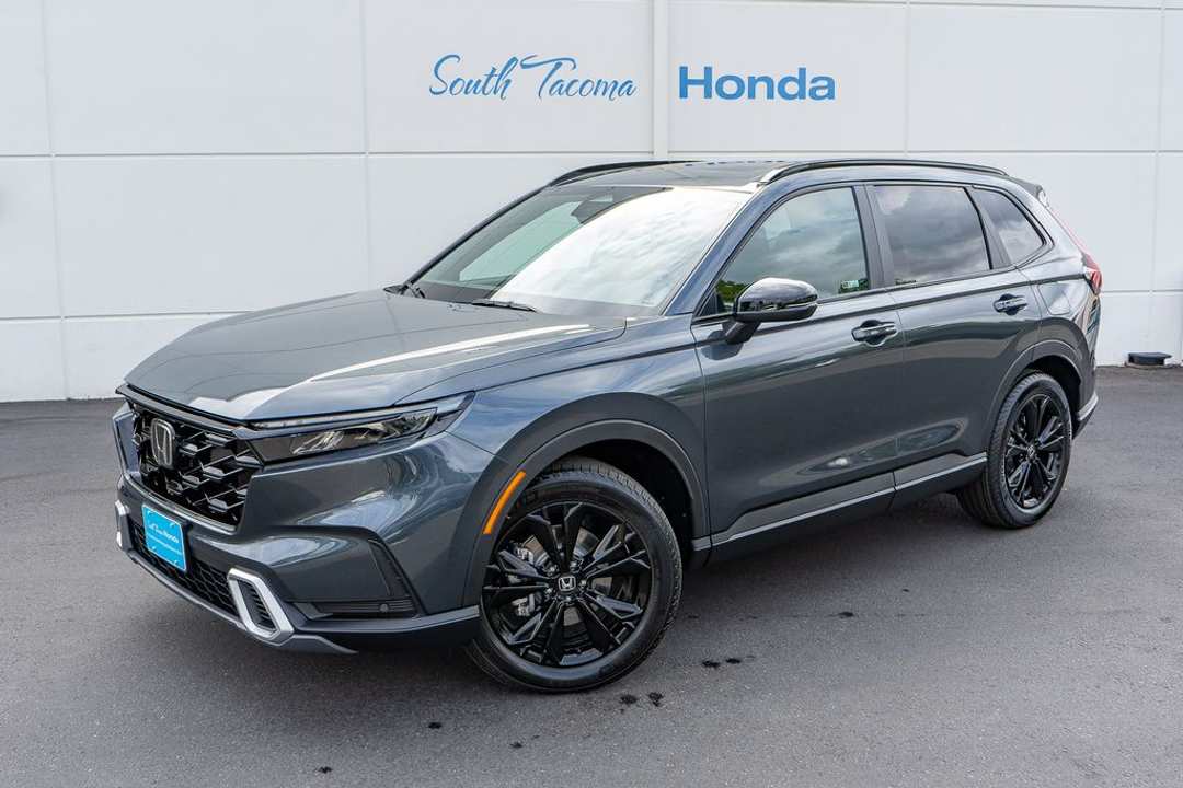 DISCOUNTED PRICING DOES NOT INCLUDE ANY DEALER INSTALLED ACCESSORIES. MAY NOT BE USED IN CONJUNCTION WITH ANY OTHER OFFERS. SEE DEALER FOR COMPLETE DETAILS. SALE PRICE EXPIRES 5/1/26. VEHICLE IS SUBJECT TO PRIOR SALE SO PLEASE CONTACT DEALER FOR AVAILABILITY. ALL OFFERS AND SALES CONTINGENT ON THE VEHICLE BEING TITLED IN WASHINGTON STATE.12 Speakers, 4-Wheel Disc Brakes, ABS brakes, Adaptive Cruise Control: Adaptive Cruise Control (ACC) with Low-Speed Follow, Air Conditioning, Alloy wheels, AM/FM radio, Apple CarPlay/Android Auto, Auto High-beam Headlights, Auto-dimming Rear-View mirror, Automatic temperature control, Blind Spot Information (BSI) System warning, Bose Premium Sound System, Brake assist, Bumpers: body-color, Compass, Delay-off headlights, Driver door bin, Driver vanity mirror, Dual front impact airbags, Dual front side impact airbags, Electronic Stability Control, Exterior Parking Camera Rear, Four wheel independent suspension, Front anti-roll bar, Front Bucket Seats, Front Center Armrest, Front dual zone A/C, Front reading lights, Fully automatic headlights, Heated door mirrors, Heated Front Bucket Seats, Heated front seats, Heated steering wheel, Illuminated entry, Knee airbag, Leather Seat Trim, Leather Shift Knob, Leather steering wheel, Low tire pressure warning, Memory seat, Navigation system: Google Maps, Occupant sensing airbag, Outside temperature display, Overhead airbag, Overhead console, Panic alarm, Passenger door bin, Passenger vanity mirror, Power door mirrors, Power driver seat, Power Liftgate, Power moonroof, Power passenger seat, Power steering, Power windows, Radio data system, Rain sensing wipers, Rear anti-roll bar, Rear reading lights, Rear seat center armrest, Rear side impact airbag, Rear window defroster, Rear window wiper, Remote keyless entry, Security system, Speed control, Speed-sensing steering, Speed-Sensitive Wipers, Split folding rear seat, Spoiler, Steering wheel mounted audio controls, Telescoping steering wheel, Tilt steering wheel, Traction control, Trip computer, Turn signal indicator mirrors, Variably intermittent wipers, Wheels: 19" Berlina Black.2026 Honda CR-V Hybrid Meteorite Gray Metallic Sport Touring 2.0L I4 DOHC 16V eCVT AWD 4D Sport Utility