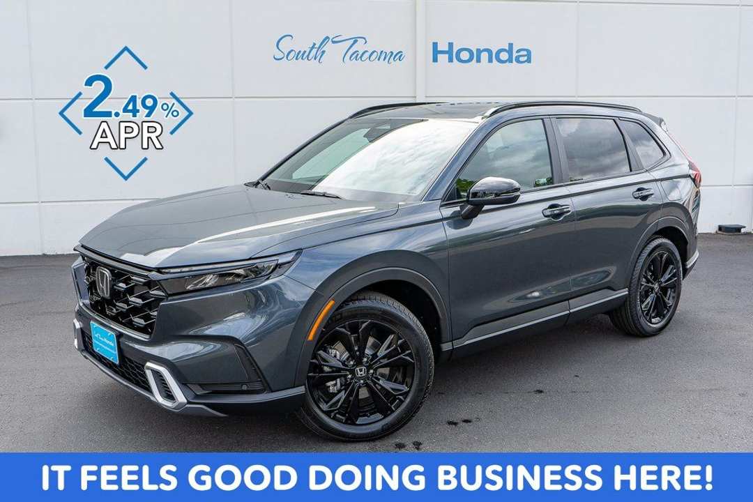 DISCOUNTED PRICING DOES NOT INCLUDE ANY DEALER INSTALLED ACCESSORIES. MAY NOT BE USED IN CONJUNCTION WITH ANY OTHER OFFERS. SEE DEALER FOR COMPLETE DETAILS. SALE PRICE EXPIRES 5/1/26. VEHICLE IS SUBJECT TO PRIOR SALE SO PLEASE CONTACT DEALER FOR AVAILABILITY. ALL OFFERS AND SALES CONTINGENT ON THE VEHICLE BEING TITLED IN WASHINGTON STATE.12 Speakers, 4-Wheel Disc Brakes, ABS brakes, Adaptive Cruise Control: Adaptive Cruise Control (ACC) with Low-Speed Follow, Air Conditioning, Alloy wheels, AM/FM radio, Apple CarPlay/Android Auto, Auto High-beam Headlights, Auto-dimming Rear-View mirror, Automatic temperature control, Blind Spot Information (BSI) System warning, Bose Premium Sound System, Brake assist, Bumpers: body-color, Compass, Delay-off headlights, Driver door bin, Driver vanity mirror, Dual front impact airbags, Dual front side impact airbags, Electronic Stability Control, Exterior Parking Camera Rear, Four wheel independent suspension, Front anti-roll bar, Front Bucket Seats, Front Center Armrest, Front dual zone A/C, Front reading lights, Fully automatic headlights, Heated door mirrors, Heated Front Bucket Seats, Heated front seats, Heated steering wheel, Illuminated entry, Knee airbag, Leather Seat Trim, Leather Shift Knob, Leather steering wheel, Low tire pressure warning, Memory seat, Navigation system: Google Maps, Occupant sensing airbag, Outside temperature display, Overhead airbag, Overhead console, Panic alarm, Passenger door bin, Passenger vanity mirror, Power door mirrors, Power driver seat, Power Liftgate, Power moonroof, Power passenger seat, Power steering, Power windows, Radio data system, Rain sensing wipers, Rear anti-roll bar, Rear reading lights, Rear seat center armrest, Rear side impact airbag, Rear window defroster, Rear window wiper, Remote keyless entry, Security system, Speed control, Speed-sensing steering, Speed-Sensitive Wipers, Split folding rear seat, Spoiler, Steering wheel mounted audio controls, Telescoping steering wheel, Tilt steering wheel, Traction control, Trip computer, Turn signal indicator mirrors, Variably intermittent wipers, Wheels: 19" Berlina Black.2026 Honda CR-V Hybrid Meteorite Gray Metallic Sport Touring 2.0L I4 DOHC 16V eCVT AWD 4D Sport Utility