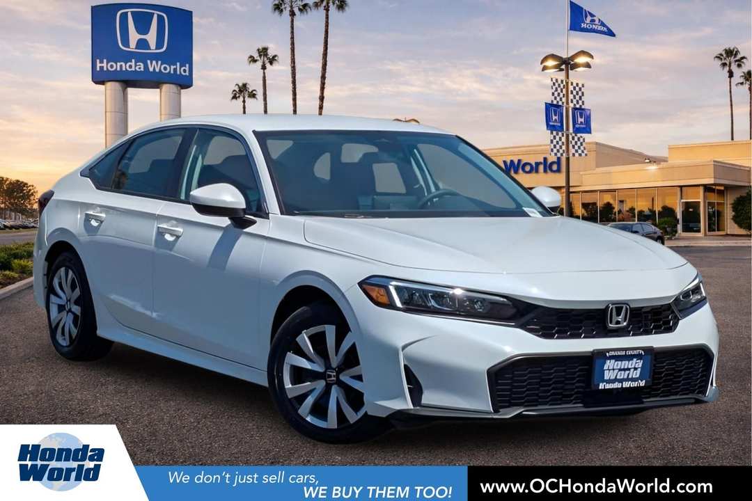 Recent Arrival! 32/41 City/Highway MPGNh-883p/Black Cloth.Platinum White Pearl 2026 Honda Civic LX FWD CVT 2.0L I4 DOHC 16VWE ACCEPT ALL FINANCE APPLICATIONS. LET US FIND THE BEST LOAN FOR YOU!!Print this page and call us now to schedule a test drive. We are open 7 days a week and just minutes from anywhere in Orange County. Our customers drive in from all over Southern California to take advantage of our great deals and easy buying process. Call now to speak with one of our friendly Pre-Owned Specialists. (714)890-8900.