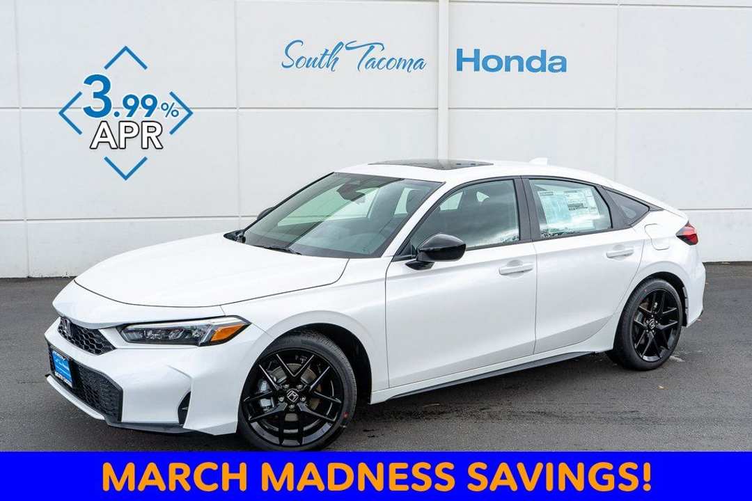 DISCOUNTED PRICING DOES NOT INCLUDE ANY DEALER INSTALLED ACCESSORIES. MAY NOT BE USED IN CONJUNCTION WITH ANY OTHER OFFERS. SEE DEALER FOR COMPLETE DETAILS. SALE PRICE EXPIRES 3/31/26. VEHICLE IS SUBJECT TO PRIOR SALE SO PLEASE CONTACT DEALER FOR AVAILABILITY. ALL OFFERS AND SALES CONTINGENT ON THE VEHICLE BEING TITLED IN WASHINGTON STATE.4-Wheel Disc Brakes, 8 Speakers, ABS brakes, Adaptive Cruise Control: Adaptive Cruise Control (ACC) with Low-Speed Follow, Air Conditioning, Alloy wheels, AM/FM radio, Apple CarPlay/Android Auto, Auto High-beam Headlights, Automatic temperature control, Blind Spot Information (BSI) System warning, Brake assist, Bumpers: body-color, Cloth/Leatherette Seat Trim, Delay-off headlights, Driver door bin, Driver vanity mirror, Dual front impact airbags, Dual front side impact airbags, Electronic Stability Control, Emergency communication system: HondaLink, Exterior Parking Camera Rear, Four wheel independent suspension, Front anti-roll bar, Front Bucket Seats, Front Center Armrest, Front dual zone A/C, Front reading lights, Fully automatic headlights, Heated door mirrors, Heated Front Bucket Seats, Heated front seats, Illuminated entry, Knee airbag, Lane departure: Lane Keeping Assist System (LKAS) active, Leather Shift Knob, Low tire pressure warning, Occupant sensing airbag, Outside temperature display, Overhead airbag, Panic alarm, Passenger door bin, Passenger vanity mirror, Power door mirrors, Power moonroof, Power steering, Power windows, Radio data system, Radio: 180-Watt Audio System, Rear anti-roll bar, Rear seat center armrest, Rear side impact airbag, Rear window defroster, Rear window wiper, Remote keyless entry, Security system, Speed control, Speed-sensing steering, Split folding rear seat, Steering wheel mounted audio controls, Tachometer, Telescoping steering wheel, Tilt steering wheel, Traction control, Trip computer, Variably intermittent wipers, Wheels: 18" Gloss Black Alloy.2026 Honda Civic Hybrid Platinum White Pearl Sport 2.0L I4 DOHC 16V eCVT FWD 4D Hatchback