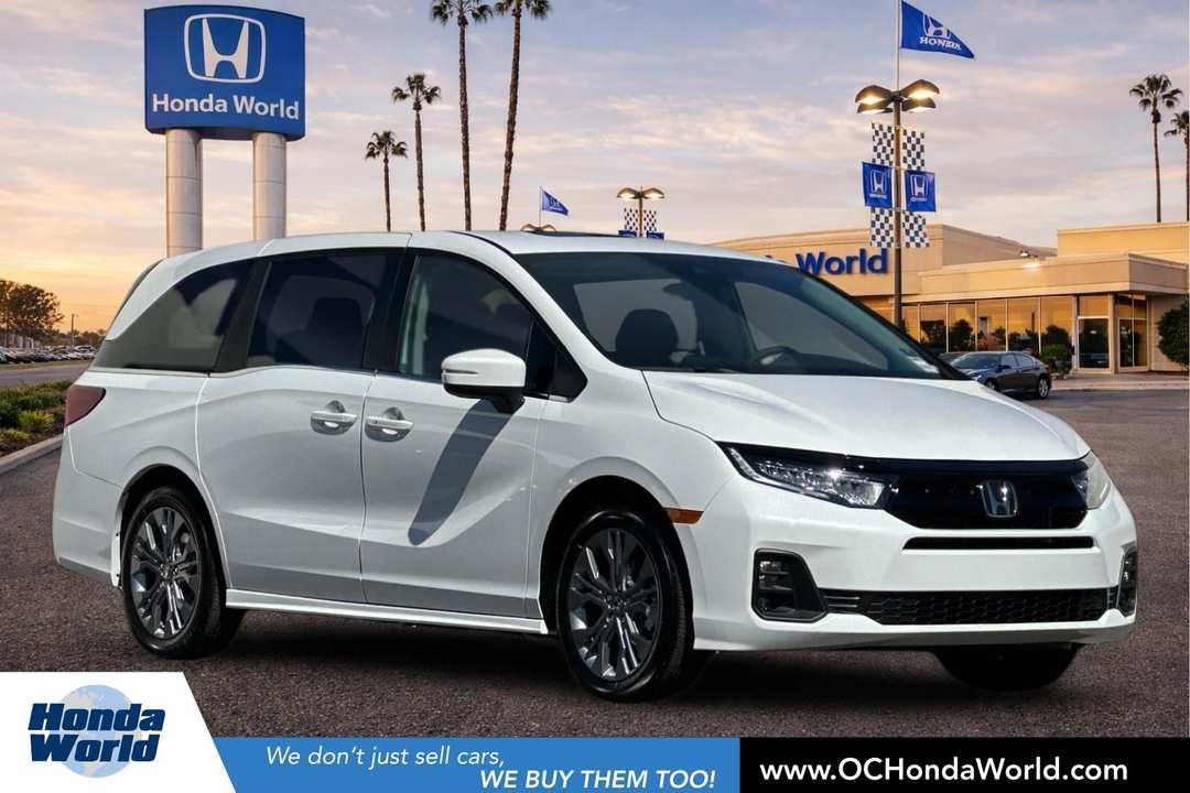 19/28 City/Highway MPGPlatinum 2026 Honda Odyssey Touring FWD 10-Speed Automatic 3.5L V6 SOHC i-VTEC 24VWE ACCEPT ALL FINANCE APPLICATIONS. LET US FIND THE BEST LOAN FOR YOU!!Print this page and call us now to schedule a test drive. We are open 7 days a week and just minutes from anywhere in Orange County. Our customers drive in from all over Southern California to take advantage of our great deals and easy buying process. Call now to speak with one of our friendly Pre-Owned Specialists. (714)890-8900.