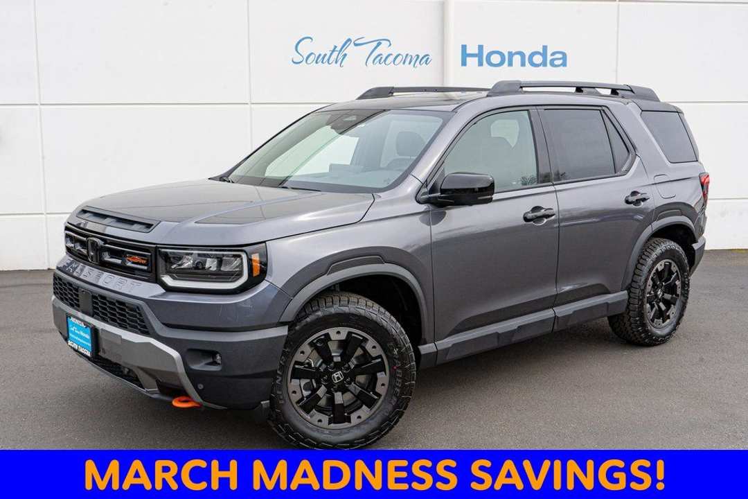 DISCOUNTED PRICING DOES NOT INCLUDE ANY DEALER INSTALLED ACCESSORIES. MAY NOT BE USED IN CONJUNCTION WITH ANY OTHER OFFERS. SEE DEALER FOR COMPLETE DETAILS. SALE PRICE EXPIRES 3/31/26. VEHICLE IS SUBJECT TO PRIOR SALE SO PLEASE CONTACT DEALER FOR AVAILABILITY. ALL OFFERS AND SALES CONTINGENT ON THE VEHICLE BEING TITLED IN WASHINGTON STATE.ABS brakes, Active Cruise Control, Alloy wheels, Compass, Electronic Stability Control, Front dual zone A/C, Heated door mirrors, Heated front seats, Heated rear seats, Illuminated entry, Low tire pressure warning, Navigation System, Perforated Leather Seat Trim, Power Liftgate, Power moonroof, Remote keyless entry, Traction control.2026 Honda Passport Modern Steel Metallic TrailSport Elite w/Tow Package 3.5L V6 DOHC 24V 10-Speed Automatic AWD 4D Sport Utility