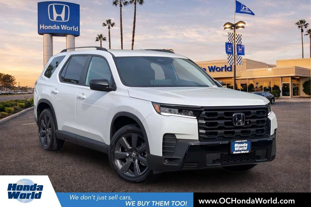 19/27 City/Highway MPGPlatinum White Pearl 2026 Honda Pilot Sport FWD 10-Speed Automatic 3.5L V6 DOHC 24VWE ACCEPT ALL FINANCE APPLICATIONS. LET US FIND THE BEST LOAN FOR YOU!!Print this page and call us now to schedule a test drive. We are open 7 days a week and just minutes from anywhere in Orange County. Our customers drive in from all over Southern California to take advantage of our great deals and easy buying process. Call now to speak with one of our friendly Pre-Owned Specialists. (714)890-8900.