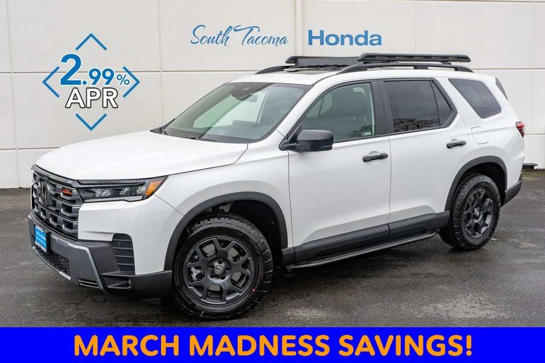 DISCOUNTED PRICING DOES NOT INCLUDE ANY DEALER INSTALLED ACCESSORIES. MAY NOT BE USED IN CONJUNCTION WITH ANY OTHER OFFERS. SEE DEALER FOR COMPLETE DETAILS. SALE PRICE EXPIRES 3/31/26. VEHICLE IS SUBJECT TO PRIOR SALE SO PLEASE CONTACT DEALER FOR AVAILABILITY. ALL OFFERS AND SALES CONTINGENT ON THE VEHICLE BEING TITLED IN WASHINGTON STATE.ABS brakes, Active Cruise Control, Alloy wheels, Compass, Electronic Stability Control, Front dual zone A/C, Heated door mirrors, Heated Front Bucket Seats, Heated front seats, Heated rear seats, Illuminated entry, Low tire pressure warning, Navigation System, Power Liftgate, Power moonroof, Remote keyless entry, Traction control.2026 Honda Pilot Platinum White Pearl TrailSport w/Adventure Package 3.5L V6 DOHC 24V 10-Speed Automatic AWD 4D Sport Utility