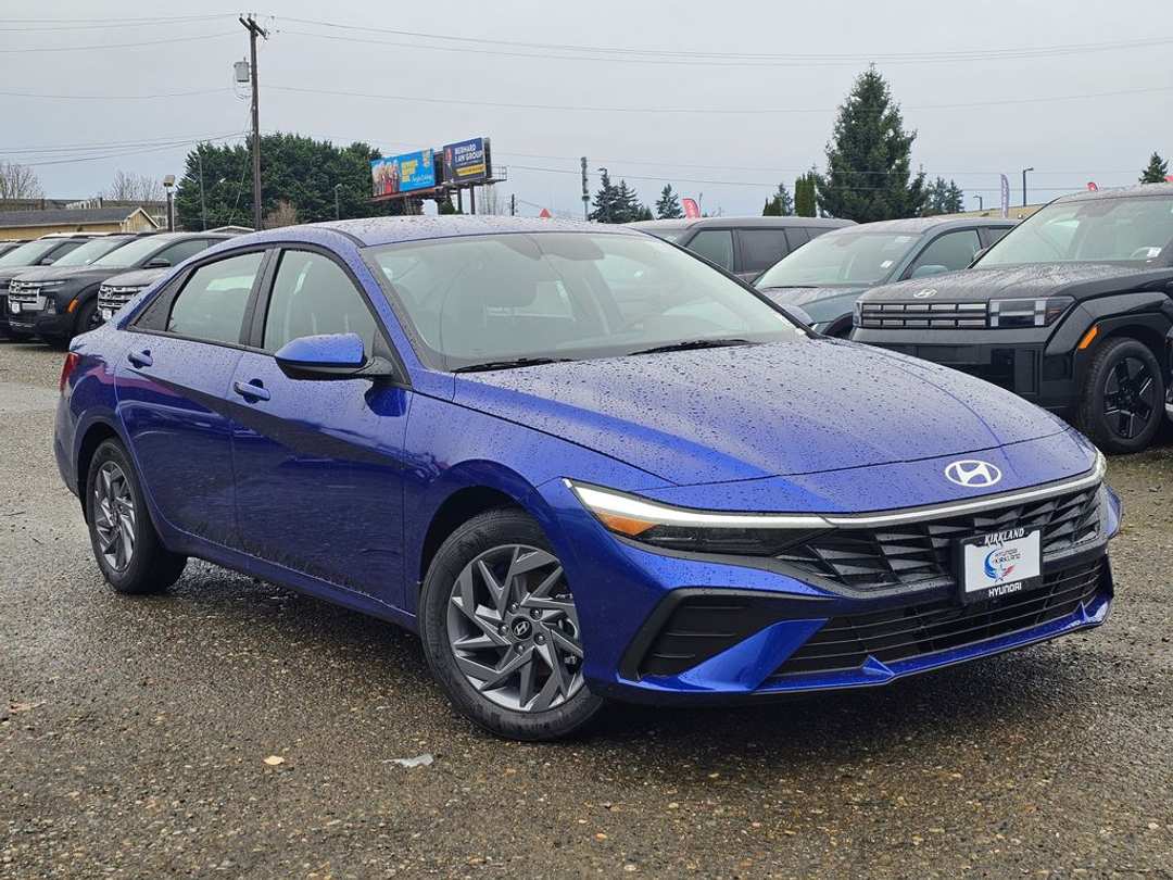 2026 Hyundai Elantra Hybrid BlueI4 6-Speed Dual Clutch FWD 4D Sedan Intense Blue I4, 16" x 6.5J Alloy Wheels, 4-Wheel Disc Brakes, 6 Speakers, ABS brakes, Air Conditioning, Alloy wheels, AM/FM radio, Apple CarPlay & Android Auto, Auto High-beam Headlights, Automatic temperature control, Brake assist, Bumpers: body-color, Cargo Blocks, Cargo Net, Cargo Tray, Carpeted Floor Mats, Delay-off headlights, Driver door bin, Driver vanity mirror, Dual front impact airbags, Dual front side impact airbags, Electronic Stability Control, Exterior Parking Camera Rear, First Aid Kit, Front anti-roll bar, Front Bucket Seats, Front Center Armrest, Front dual zone A/C, Front reading lights, Front wheel independent suspension, Fully automatic headlights, Heated door mirrors, Illuminated entry, Low tire pressure warning, Mud Guards, Occupant sensing airbag, Option Group 01, Outside temperature display, Overhead airbag, Overhead console, Panic alarm, Passenger door bin, Passenger vanity mirror, Power door mirrors, Power steering, Power windows, Premium Cloth Seat Trim, Radio: AM/FM/HD Display Audio, Rear side impact airbag, Rear window defroster, Remote keyless entry, Security system, Speed control, Speed-sensing steering, Steering wheel mounted audio controls, Tachometer, Telescoping steering wheel, Tilt steering wheel, Traction control, Trip computer, Variably intermittent wipers, I4. Prices good through 5-31-2025. Kirkland Price includes:$2000 - Hyundai HMF Dealer Choice : $2000 discount and 5.39% APR for 24 months. $44.05 per $1000 financed. Available to well qualified buyers who finance through Hyundai Motor Finance. H704.