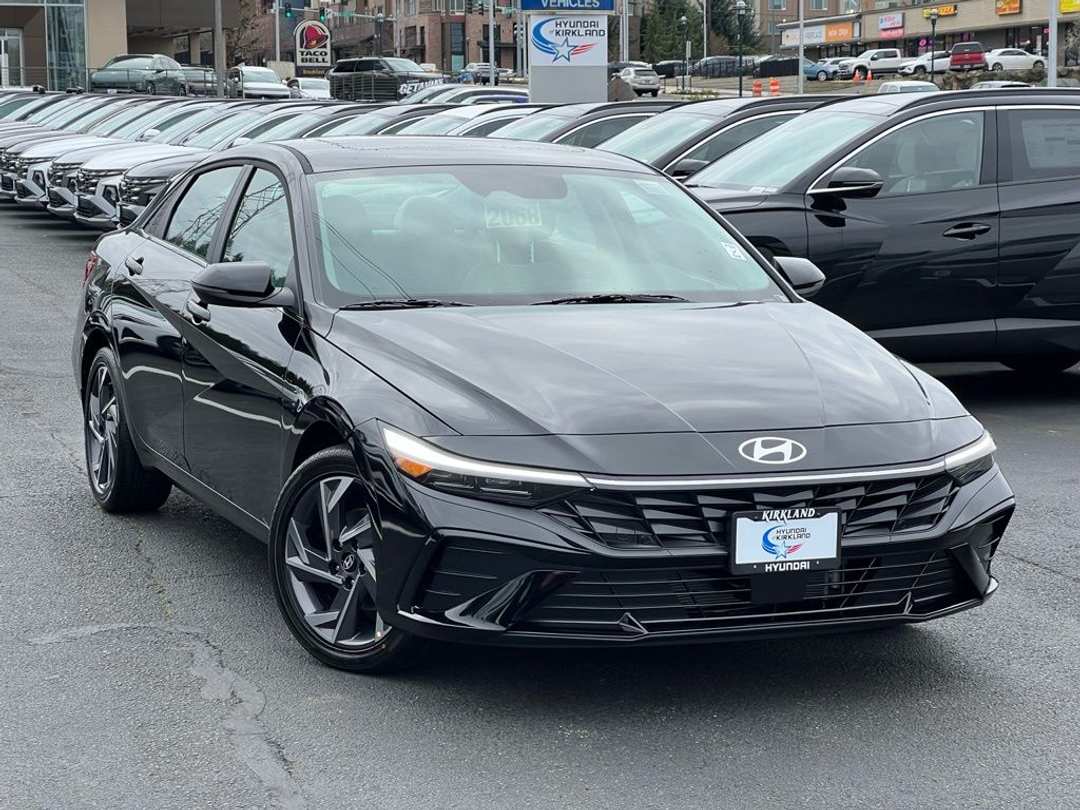 2026 Hyundai Elantra Hybrid LimitedI4 6-Speed Dual Clutch FWD 4D Sedan Abyss Black I4, 4-Wheel Disc Brakes, 8 Speakers, ABS brakes, Air Conditioning, Alloy wheels, AM/FM radio: SiriusXM, Apple CarPlay & Android Auto, Auto High-beam Headlights, Auto-dimming Rear-View mirror, Automatic temperature control, Brake assist, Bumpers: body-color, Cargo Blocks, Cargo Net, Cargo Tray, Carpeted Floor Mats, Center Console Tray, Delay-off headlights, Driver door bin, Driver vanity mirror, Dual front impact airbags, Dual front side impact airbags, Electronic Stability Control, Emergency communication system: None, Exterior Parking Camera Rear, First Aid Kit, Front anti-roll bar, Front Bucket Seats, Front Center Armrest, Front dual zone A/C, Front reading lights, Front wheel independent suspension, Fully automatic headlights, H-Tex Leatherette Seat Trim, Heated and Ventilated Front Bucket Seats, Heated door mirrors, Heated front seats, Illuminated entry, Low tire pressure warning, Memory seat, Mud Guards, Navigation System, Occupant sensing airbag, Option Group 01, Outside temperature display, Overhead airbag, Overhead console, Panic alarm, Passenger door bin, Passenger vanity mirror, Power door mirrors, Power driver seat, Power moonroof, Power steering, Power windows, Radio: AM/FM/HD/SiriusXM Display Audio, Rear seat center armrest, Rear side impact airbag, Rear window defroster, Remote keyless entry, Security system, Speed control, Speed-sensing steering, Split folding rear seat, Steering wheel mounted audio controls, Tachometer, Telescoping steering wheel, Tilt steering wheel, Traction control, Trip computer, Turn signal indicator mirrors, Variably intermittent wipers, Ventilated front seats, Wheels: 17 x 7.0J Machine Finish Alloy, I4. Prices good through 5-31-2025. Kirkland Price includes:$2000 - Hyundai HMF Dealer Choice : $2000 discount and 5.39% APR for 24 months. $44.05 per $1000 financed. Available to well qualified buyers who finance through Hyundai Motor Finance. H704.