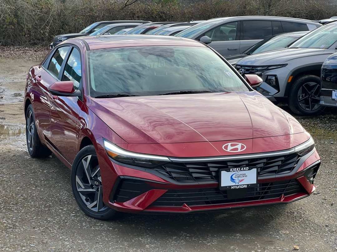 2026 Hyundai Elantra Hybrid LimitedI4 6-Speed Dual Clutch FWD 4D Sedan Ultimate Red Metallic I4, 4-Wheel Disc Brakes, 8 Speakers, ABS brakes, Air Conditioning, Alloy wheels, AM/FM radio: SiriusXM, Apple CarPlay & Android Auto, Auto High-beam Headlights, Auto-dimming Rear-View mirror, Automatic temperature control, Brake assist, Bumpers: body-color, Cargo Net, Cargo Side Bins, Cargo Tray, Carpeted Floor Mats, Center Console Tray, Delay-off headlights, Driver door bin, Driver vanity mirror, Dual front impact airbags, Dual front side impact airbags, Electronic Stability Control, Emergency communication system: None, Exterior Parking Camera Rear, First Aid Kit, Front anti-roll bar, Front Bucket Seats, Front Center Armrest, Front dual zone A/C, Front reading lights, Front wheel independent suspension, Fully automatic headlights, H-Tex Leatherette Seat Trim, Heated and Ventilated Front Bucket Seats, Heated door mirrors, Heated front seats, Illuminated entry, Low tire pressure warning, Memory seat, Navigation System, Occupant sensing airbag, Option Group 01, Outside temperature display, Overhead airbag, Overhead console, Panic alarm, Passenger door bin, Passenger vanity mirror, Power door mirrors, Power driver seat, Power moonroof, Power steering, Power windows, Radio: AM/FM/HD/SiriusXM Display Audio, Rear seat center armrest, Rear side impact airbag, Rear window defroster, Remote keyless entry, Security system, Severe Weather Kit, Speed control, Speed-sensing steering, Split folding rear seat, Steering wheel mounted audio controls, Tachometer, Telescoping steering wheel, Tilt steering wheel, Traction control, Trip computer, Turn signal indicator mirrors, Variably intermittent wipers, Ventilated front seats, Wheels: 17 x 7.0J Machine Finish Alloy, I4. Prices good through 5-31-2025. Kirkland Price includes:$2000 - Hyundai HMF Dealer Choice : $2000 discount and 5.39% APR for 24 months. $44.05 per $1000 financed. Available to well qualified buyers who finance through Hyundai Motor Finance. H704.
