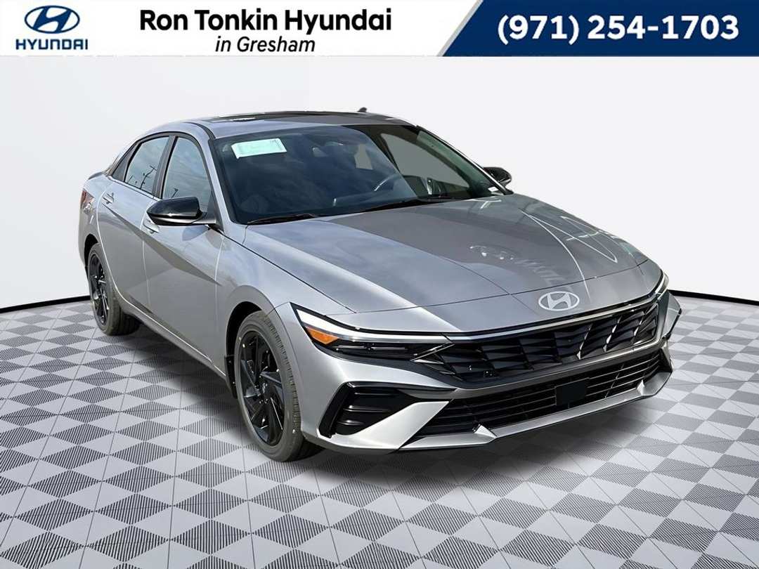 2026 Hyundai Elantra SEL Sport I4 CVT FWD 4D Sedan Fluid Metal 4-Wheel Disc Brakes, 6 Speakers, ABS brakes, Air Conditioning, Alloy wheels, AM/FM radio, Apple CarPlay & Android Auto, Auto High-beam Headlights, Automatic temperature control, Brake assist, Bumpers: body-color, Cargo Tray, Carpeted Floor Mats, Delay-off headlights, Driver door bin, Driver vanity mirror, Dual front impact airbags, Dual front side impact airbags, Electronic Stability Control, Exterior Parking Camera Rear, First Aid Kit, Front anti-roll bar, Front Bucket Seats, Front Center Armrest, Front dual zone A/C, Front reading lights, Front wheel independent suspension, Fully automatic headlights, Heated door mirrors, Heated Front Bucket Seats, Heated front seats, Illuminated entry, Low tire pressure warning, Mudguards, Occupant sensing airbag, Option Group 01, Outside temperature display, Overhead airbag, Overhead console, Panic alarm, Passenger door bin, Passenger vanity mirror, Power door mirrors, Power moonroof, Power steering, Power windows, Premium Cloth Seat Trim, Radio: AM/FM/HD Display Audio, Rear seat center armrest, Rear side impact airbag, Rear window defroster, Remote keyless entry, Roadside Assistance Kit, Security system, Speed control, Speed-sensing steering, Split folding rear seat, Spoiler, Steering wheel mounted audio controls, Tachometer, Telescoping steering wheel, Tilt steering wheel, Traction control, Trip computer, Variably intermittent wipers, Wheels: 17" x 7.0J Alloy Gloss Black w/Dark Finish. Call for availability. Come in to Ron Tonkin Gresham Hyundai to test drive today! DA2028 View our entire inventory at https://www.rontonkinhyundai.com/ Pricing includes all applicable factory rebates, and discounts, buyer must finance through HMFA on approved credit. Price excludes tax, title, license, doc fee and dealer added accessories. Price includes: $2000 - Hyundai HMF Dealer Choice : $2000 discount and 5.39% APR for 24 months. $44.05 per $1000 financed. Available to well qualified buyers who finance through Hyundai Motor Finance. H704. Exp. 03/31/2026