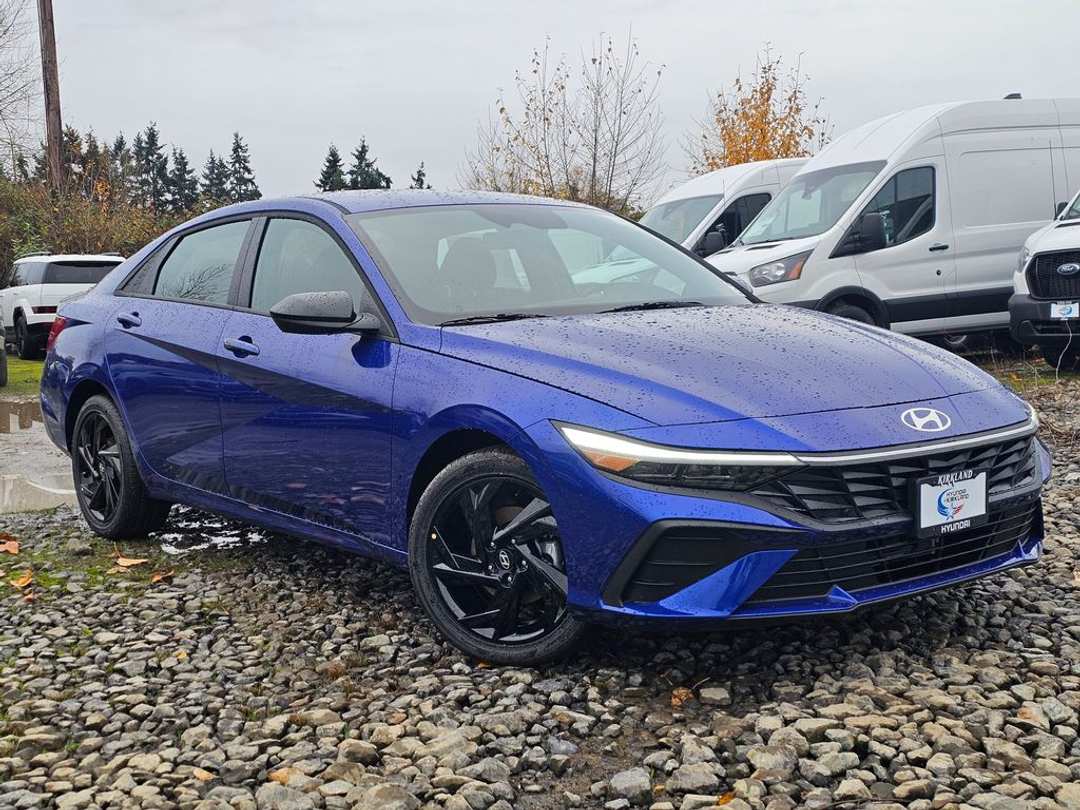 2026 Hyundai Elantra Hybrid SEL SportI4 6-Speed Dual Clutch FWD 4D Sedan Intense Blue I4, 4-Wheel Disc Brakes, 6 Speakers, ABS brakes, Air Conditioning, Alloy wheels, AM/FM radio: SiriusXM, Apple CarPlay & Android Auto, Auto High-beam Headlights, Automatic temperature control, Brake assist, Bumpers: body-color, Cargo Blocks, Cargo Net, Cargo Tray, Carpeted Floor Mats, Delay-off headlights, Door Sill Plates, Driver door bin, Driver vanity mirror, Dual front impact airbags, Dual front side impact airbags, Electronic Stability Control, Emergency communication system: None, Exterior Parking Camera Rear, Front anti-roll bar, Front Bucket Seats, Front Center Armrest, Front dual zone A/C, Front reading lights, Front wheel independent suspension, Fully automatic headlights, Heated door mirrors, Illuminated entry, Low tire pressure warning, Navigation System, Occupant sensing airbag, Option Group 01, Outside temperature display, Overhead airbag, Overhead console, Panic alarm, Passenger door bin, Passenger vanity mirror, Power door mirrors, Power steering, Power windows, Premium Cloth Seat Trim, Radio: AM/FM/HD/SiriusXM Display Audio, Rear side impact airbag, Rear window defroster, Remote keyless entry, Security system, Speed control, Speed-sensing steering, Spoiler, Steering wheel mounted audio controls, Tachometer, Telescoping steering wheel, Tilt steering wheel, Traction control, Trip computer, Variably intermittent wipers, Wheels: 17 x 7.0J Gloss Black Dark Finish Alloy, I4. Prices good through 5-31-2025. Kirkland Price includes:$2000 - Hyundai HMF Dealer Choice : $2000 discount and 5.39% APR for 24 months. $44.05 per $1000 financed. Available to well qualified buyers who finance through Hyundai Motor Finance. H704.