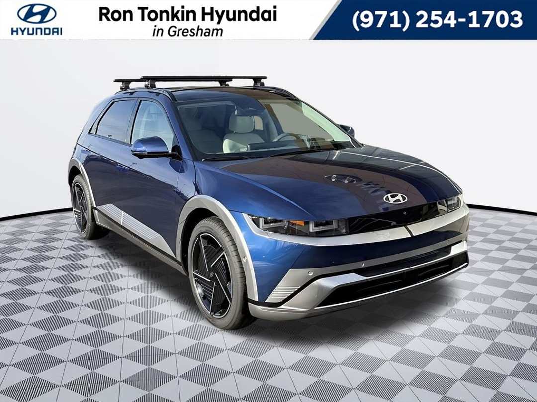 2026 Hyundai IONIQ 5 Limited Electric Motor 1-Speed Automatic AWD 4D Sport Utility Cosmic Blue 4-Wheel Disc Brakes, 8 Speakers, ABS brakes, Air Conditioning, Alloy wheels, AM/FM radio: SiriusXM, Apple CarPlay & Android Auto, Auto High-beam Headlights, Auto-dimming Rear-View mirror, Automatic temperature control, Bodyside moldings, Brake assist, Bumpers: body-color, Cargo Blocks, Cargo Net, Carpeted Floor Mats, Cross Rails, Delay-off headlights, Driver door bin, Driver vanity mirror, Dual front impact airbags, Dual front side impact airbags, Electronic Stability Control, Emergency communication system: None, First Aid Kit, Four wheel independent suspension, Front anti-roll bar, Front Bucket Seats, Front Center Armrest w/Storage, Front dual zone A/C, Front reading lights, Fully automatic headlights, Garage door transmitter: HomeLink, H-Tex Artificial Leather Seating Surfaces, Heads-Up Display, Heated and Ventilated Front Bucket Seats, Heated door mirrors, Heated front seats, Heated rear seats, Heated steering wheel, Illuminated entry, Low tire pressure warning, Memory seat, Navigation System, Occupant sensing airbag, Option Group 01, Outside temperature display, Overhead airbag, Overhead console, Panic alarm, Passenger door bin, Passenger vanity mirror, Power door mirrors, Power driver seat, Power Liftgate, Power passenger seat, Power steering, Power windows, Radio: AM/FM/SiriusXM/HD Audio System, Rain sensing wipers, Rear anti-roll bar, Rear reading lights, Rear seat center armrest, Rear side impact airbag, Rear window defroster, Rear window wiper, Remote keyless entry, Security system, Speed control, Speed-sensing steering, Split folding rear seat, Spoiler, Steering wheel mounted audio controls, Telescoping steering wheel, Tilt steering wheel, Traction control, Trip computer, Turn signal indicator mirrors, Variably intermittent wipers, Ventilated front seats, Wheels: 20" x 8.5J Alloy. Call for availability. Come in to Ron Tonkin Gresham Hyundai to test drive today! DA2028 View our entire inventory at https://www.rontonkinhyundai.com/ Pricing includes all applicable factory rebates, and discounts, buyer must finance through HMFA on approved credit. Price excludes tax, title, license, doc fee and dealer added accessories. Price includes: $8750 - Hyundai HMF Dealer Choice : $8750 discount and 5.39% APR for 24 months. $44.05 per $1000 financed. Available to well qualified buyers who finance through Hyundai Motor Finance. H704. Exp. 04/30/2026