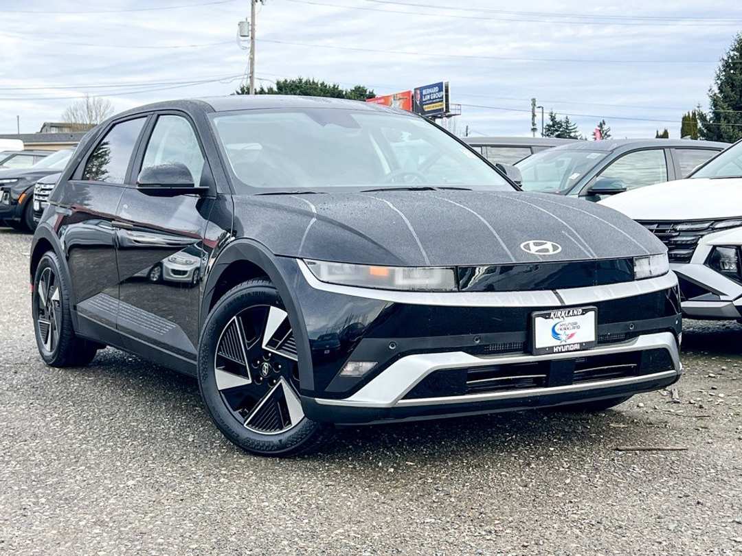 2026 Hyundai IONIQ 5 SELElectric Motor 1-Speed Automatic AWD 4D Sport Utility Abyss Black 4-Wheel Disc Brakes, 6 Speakers, ABS brakes, Air Conditioning, Alloy wheels, AM/FM radio: SiriusXM, Apple CarPlay & Android Auto, Auto High-beam Headlights, Auto-dimming Rear-View mirror, Automatic temperature control, Bodyside moldings, Brake assist, Bumpers: body-color, Cargo Net, Carpeted Floor Mats, Delay-off headlights, Driver door bin, Driver vanity mirror, Dual front impact airbags, Dual front side impact airbags, Electronic Stability Control, Emergency communication system: None, First Aid Kit, Four wheel independent suspension, Front anti-roll bar, Front Bucket Seats, Front Center Armrest w/Storage, Front dual zone A/C, Front reading lights, Fully automatic headlights, Garage door transmitter: HomeLink, H-Tex Artificial Leather Seating Surfaces, harman/kardon® Speakers, Heated door mirrors, Heated Front Bucket Seats, Heated front seats, Illuminated entry, Low tire pressure warning, Mudguards, Navigation System, Occupant sensing airbag, Option Group 01, Outside temperature display, Overhead airbag, Overhead console, Panic alarm, Passenger door bin, Passenger vanity mirror, Power door mirrors, Power driver seat, Power Liftgate, Power passenger seat, Power steering, Power windows, Radio: AM/FM/SiriusXM/HD Audio System, Rear anti-roll bar, Rear reading lights, Rear seat center armrest, Rear side impact airbag, Rear window defroster, Rear window wiper, Remote keyless entry, Security system, Severe Weather Kit, Speed control, Speed-sensing steering, Split folding rear seat, Spoiler, Steering wheel mounted audio controls, Telescoping steering wheel, Tilt steering wheel, Traction control, Trip computer, Turn signal indicator mirrors, Up Seatback Cargo Mat, Variably intermittent wipers, Wheels: 19" x 7.5J Alloy. Prices good through 5-31-2025. Kirkland Price includes:$10000 - Hyundai HMF Dealer Choice: $10000 discount and 5.39% APR for 24 months. $44.05 per $1000 financed. Available to well qualified buyers who finance through Hyundai Motor Finance. H704.