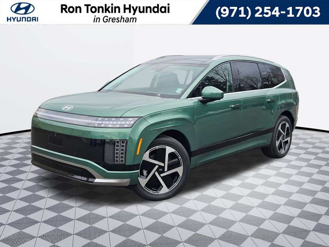 2026 Hyundai IONIQ 9 Performance Calligraphy Electric Motor 1-Speed Automatic AWD 4D Sport Utility Ionosphere Green 14 Speakers, 3rd row seats: bench, 4-Wheel Disc Brakes, ABS brakes, Air Conditioning, Alloy wheels, AM/FM radio: SiriusXM, Apple CarPlay & Android Auto, Auto High-beam Headlights, Auto-dimming Rear-View mirror, Auto-leveling suspension, Automatic temperature control, Bodyside moldings, Brake assist, Bumpers: body-color, Cargo Cover, Cargo Net, Cargo Tray, Carpeted Floor Mats, Delay-off headlights, Driver door bin, Driver vanity mirror, Dual front impact airbags, Dual front side impact airbags, Electronic Stability Control, Emergency communication system: None, First Aid Kit, Four wheel independent suspension, Front anti-roll bar, Front Bucket Seats, Front Center Armrest, Front dual zone A/C, Front reading lights, Fully automatic headlights, Garage door transmitter: HomeLink, Heads-Up Display, Heated and Ventilated Front Bucket Seats, Heated door mirrors, Heated front seats, Heated rear seats, Heated steering wheel, Illuminated entry, Leather steering wheel, Low tire pressure warning, Memory seat, Navigation System, Occupant sensing airbag, Option Group 01, Outside temperature display, Overhead airbag, Overhead console, Panic alarm, Passenger door bin, Passenger vanity mirror, Power door mirrors, Power driver seat, Power Liftgate, Power moonroof: Panoramic, Power passenger seat, Power steering, Power windows, Premium Grade H-Tex Leatherette Seating Surfaces, Radio: AM/FM/SiriusXM/HD Audio System, Rain sensing wipers, Rear air conditioning, Rear anti-roll bar, Rear reading lights, Rear side impact airbag, Rear window defroster, Rear window wiper, Reclining 3rd row seat, Remote keyless entry, Security system, Speed control, Split folding rear seat, Spoiler, Steering wheel memory, Steering wheel mounted audio controls, Telescoping steering wheel, Tilt steering wheel, Tow Hitch, Traction control, Trip computer, Turn signal indicator mirrors, Variably intermittent wipers, Ventilated front seats, Ventilated rear seats, Wheels: 21" x 9J 5-Spoke Alloy. Call for availability. Come in to Ron Tonkin Gresham Hyundai to test drive today! DA2028 View our entire inventory at https://www.rontonkinhyundai.com/ Pricing includes all applicable factory rebates, and discounts, buyer must finance through HMFA on approved credit. Price excludes tax, title, license, doc fee and dealer added accessories. Price includes: $10000 - Retail Bonus Cash. Exp. 03/31/2026