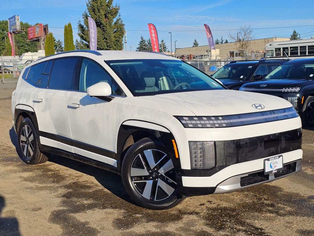 2026 Hyundai IONIQ 9 SELElectric Motor 1-Speed Automatic AWD 4D Sport Utility Snow White Pearl 20" x 8J Alloy Wheels, 3rd row seats: bench, 4-Wheel Disc Brakes, 8 Speakers, ABS brakes, Air Conditioning, Alloy wheels, AM/FM radio: SiriusXM, Apple CarPlay & Android Auto, Auto High-beam Headlights, Auto-dimming Rear-View mirror, Auto-leveling suspension, Automatic temperature control, Ball Mount Kit, Bodyside moldings, Brake assist, Bumpers: body-color, Cargo Cover, Cargo Net, Carpeted Floor Mats, Delay-off headlights, Driver door bin, Driver vanity mirror, Dual front impact airbags, Dual front side impact airbags, Electronic Stability Control, Emergency communication system: None, First Aid Kit, Four wheel independent suspension, Front anti-roll bar, Front Bucket Seats, Front Center Armrest, Front dual zone A/C, Front reading lights, Fully automatic headlights, Garage door transmitter: HomeLink, H-Tex Leatherette Seating Surfaces, harman/kardon® Speakers, Heated and Ventilated Front Bucket Seats, Heated door mirrors, Heated front seats, Heated rear seats, Heated steering wheel, Illuminated entry, Leather steering wheel, Low tire pressure warning, Navigation System, Occupant sensing airbag, Option Group 01, Outside temperature display, Overhead airbag, Overhead console, Panic alarm, Passenger door bin, Passenger vanity mirror, Power door mirrors, Power driver seat, Power Liftgate, Power passenger seat, Power steering, Power windows, Radio: AM/FM/SiriusXM/HD Audio System, Rain sensing wipers, Rear air conditioning, Rear anti-roll bar, Rear reading lights, Rear seat center armrest, Rear side impact airbag, Rear window defroster, Rear window wiper, Reclining 3rd row seat, Remote keyless entry, Security system, Speed control, Split folding rear seat, Spoiler, Steering wheel mounted audio controls, Telescoping steering wheel, Tilt steering wheel, Tow and Go Package, Tow Hitch, Traction control, Trip computer, Turn signal indicator mirrors, Variably intermittent wipers, Ventilated front seats. Prices good through 5-31-2025. Kirkland Price includes:$10000 - Retail Bonus Cash