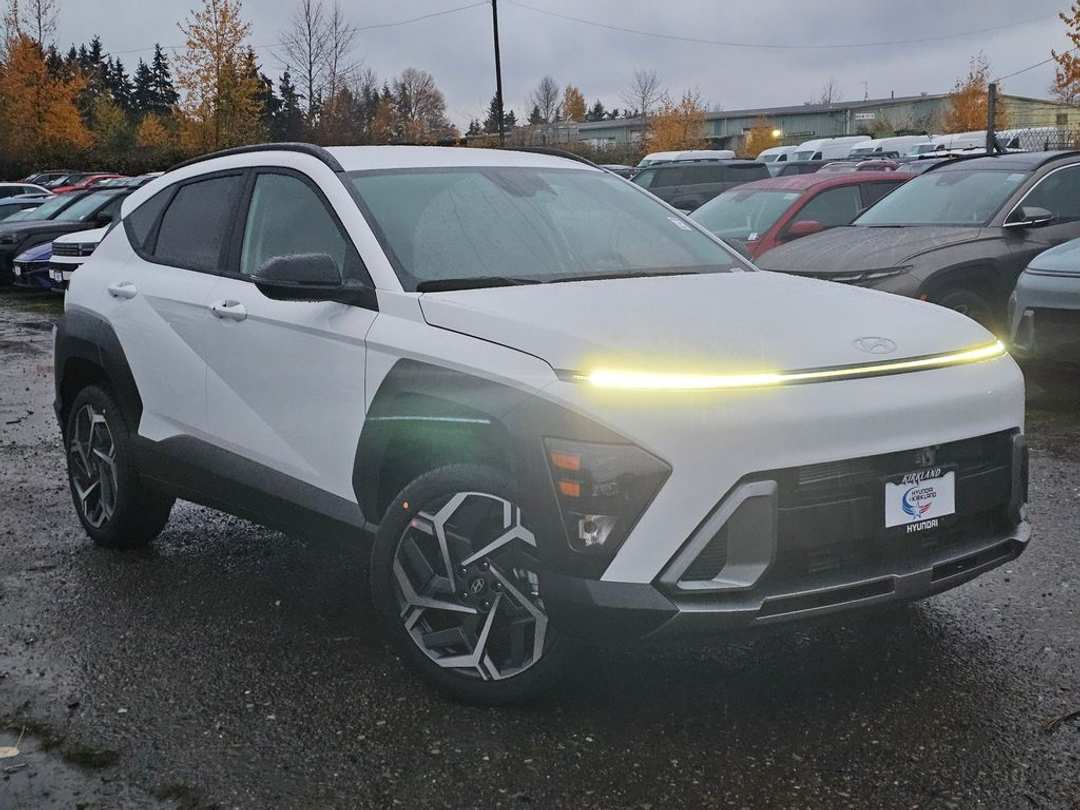 2026 Hyundai Kona SEL PremiumI4 8-Speed Automatic AWD 4D Sport Utility Atlas White 4-Wheel Disc Brakes, 6 Speakers, ABS brakes, Air Conditioning, Alloy wheels, AM/FM radio: SiriusXM, Apple CarPlay & Android Auto, Auto High-beam Headlights, Automatic temperature control, Brake assist, Bumpers: body-color, Cargo Blocks, Cargo Net, Cargo Tray, Carpeted Floor Mats, Delay-off headlights, Driver door bin, Driver vanity mirror, Dual front impact airbags, Dual front side impact airbags, Electronic Stability Control, Emergency communication system: None, Exterior Parking Camera Rear, First Aid Kit, Four wheel independent suspension, Front anti-roll bar, Front Bucket Seats, Front Center Armrest, Front dual zone A/C, Front reading lights, Fully automatic headlights, H-Tex Seat Trim, Heated door mirrors, Heated Front Bucket Seats, Heated front seats, Illuminated entry, Leather steering wheel, Low tire pressure warning, Mud Guards, Occupant sensing airbag, Option Group 01, Outside temperature display, Overhead airbag, Panic alarm, Passenger door bin, Passenger vanity mirror, Power door mirrors, Power driver seat, Power steering, Power windows, Radio: AM/FM/SiriusXM/HD Audio System, Rear anti-roll bar, Rear seat center armrest, Rear window defroster, Rear window wiper, Remote keyless entry, Road Assistance Kit, Security system, Speed control, Speed-sensing steering, Split folding rear seat, Spoiler, Steering wheel mounted audio controls, Tachometer, Telescoping steering wheel, Tilt steering wheel, Traction control, Trip computer, Turn signal indicator mirrors, Variably intermittent wipers, Wheels: 19" x 7.5J Black/Silver Alloy. Prices good through 5-31-2025. Kirkland Price includes:$1000 - Hyundai HMF Dealer Choice : $1000 discount and 5.39% APR for 24 months. $44.05 per $1000 financed. Available to well qualified buyers who finance through Hyundai Motor Finance. H704. $750 - Sales Event Cash
