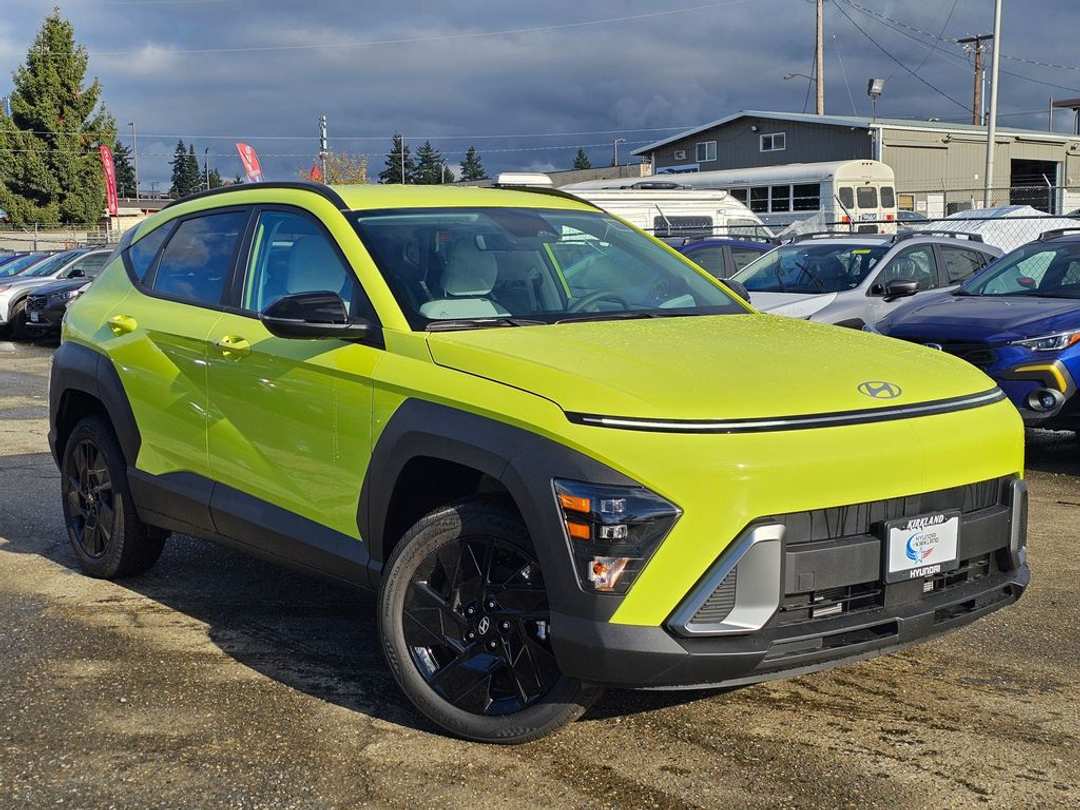 2026 Hyundai Kona SEL Sport2.0L I4 DOHC 16V CVT AWD 4D Sport Utility Neoteric Yellow 4-Wheel Disc Brakes, 6 Speakers, ABS brakes, Air Conditioning, Alloy wheels, AM/FM radio: SiriusXM, Apple CarPlay & Android Auto, Auto High-beam Headlights, Automatic temperature control, Brake assist, Bumpers: body-color, Cargo Tray, Carpeted Floor Mats, Cloth Seat Trim, Delay-off headlights, Driver door bin, Driver vanity mirror, Dual front impact airbags, Dual front side impact airbags, Electronic Stability Control, Emergency communication system: None, Exterior Parking Camera Rear, First Aid Kit, Four wheel independent suspension, Front anti-roll bar, Front Bucket Seats, Front Center Armrest, Front dual zone A/C, Front reading lights, Fully automatic headlights, Heated door mirrors, Heated Front Bucket Seats, Heated front seats, Illuminated entry, Leather steering wheel, Lifestyle Hitch, Low tire pressure warning, Occupant sensing airbag, Option Group 01, Outside temperature display, Overhead airbag, Panic alarm, Passenger door bin, Passenger vanity mirror, Power door mirrors, Power steering, Power windows, Radio: AM/FM/SiriusXM/HD Audio System, Rear anti-roll bar, Rear seat center armrest, Rear window defroster, Rear window wiper, Remote keyless entry, Security system, Speed control, Speed-sensing steering, Split folding rear seat, Spoiler, Steering wheel mounted audio controls, Tachometer, Telescoping steering wheel, Tilt steering wheel, Traction control, Trip computer, Variably intermittent wipers, Wheels: 18" x 7.0J Black Alloy. Prices good through 5-31-2025. Kirkland Price includes:$1000 - Hyundai HMF Dealer Choice : $1000 discount and 5.39% APR for 24 months. $44.05 per $1000 financed. Available to well qualified buyers who finance through Hyundai Motor Finance. H704. $750 - Sales Event Cash