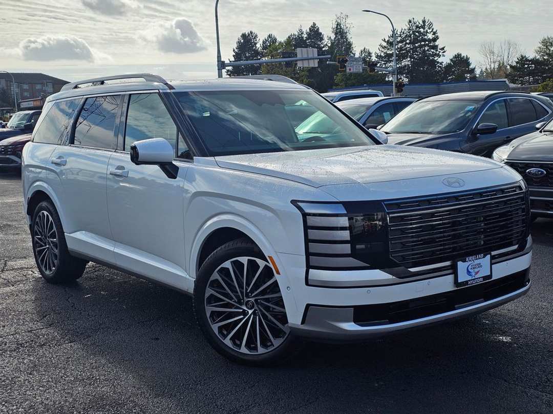 2026 Hyundai Palisade CalligraphyV6 8-Speed Automatic AWD 4D Sport Utility Creamy White Pearl 14 Speakers, 3rd row seats: split-bench, 4-Wheel Disc Brakes, ABS brakes, Air Conditioning, All-Season Fitted Liners, Alloy wheels, AM/FM radio: SiriusXM, Apple CarPlay & Android Auto, Audio memory, Auto High-beam Headlights, Auto-dimming door mirrors, Auto-dimming Rear-View mirror, Auto-leveling suspension, Automatic temperature control, Brake assist, Bumpers: body-color, Cargo Net, Cargo Tray, Carpeted Floor Mats, Compass, Delay-off headlights, Driver door bin, Driver vanity mirror, Dual front impact airbags, Dual front side impact airbags, Electronic Stability Control, Emergency communication system: None, Exterior Parking Camera Rear, First Aid Kit, Four wheel independent suspension, Front anti-roll bar, Front Bucket Seats, Front Center Armrest, Front dual zone A/C, Front reading lights, Fully automatic headlights, Garage door transmitter: HomeLink, Genuine wood console insert, Genuine wood dashboard insert, Heads-Up Display, Heated and Ventilated Front Bucket Seats, Heated door mirrors, Heated front seats, Heated rear seats, Heated steering wheel, HVAC memory, Illuminated entry, Knee airbag, Leather steering wheel, Low tire pressure warning, Memory seat, Mud Guards, Navigation System, Occupant sensing airbag, Option Group 01, Outside temperature display, Overhead airbag, Overhead console, Panic alarm, Passenger door bin, Passenger vanity mirror, Power door mirrors, Power driver seat, Power Liftgate, Power moonroof, Power passenger seat, Power steering, Power windows, Premium Nappa Leather Seat Trim, Radio data system, Radio: Infotainment Navigation System, Rain sensing wipers, Rear air conditioning, Rear anti-roll bar, Rear audio controls, Rear reading lights, Rear side impact airbag, Rear window defroster, Rear window wiper, Reclining 3rd row seat, Remote keyless entry, Security system, Side Steps, Speed control, Split folding rear seat, Spoiler, Steering wheel mounted audio controls, Tachometer, Telescoping steering wheel, Tilt steering wheel, Traction control, Trip computer, Turn signal indicator mirrors, Variably intermittent wipers, Ventilated front seats, Ventilated rear seats, Wheels: 21" x 8.5J Alloy. Prices good through 5-31-2025. Kirkland Price includes:$1000 - Hyundai HMF Dealer Choice : $1000 discount and 5.39% APR for 24 months. $44.05 per $1000 financed. Available to well qualified buyers who finance through Hyundai Motor Finance. H704. $2000 - Sales Event Cash