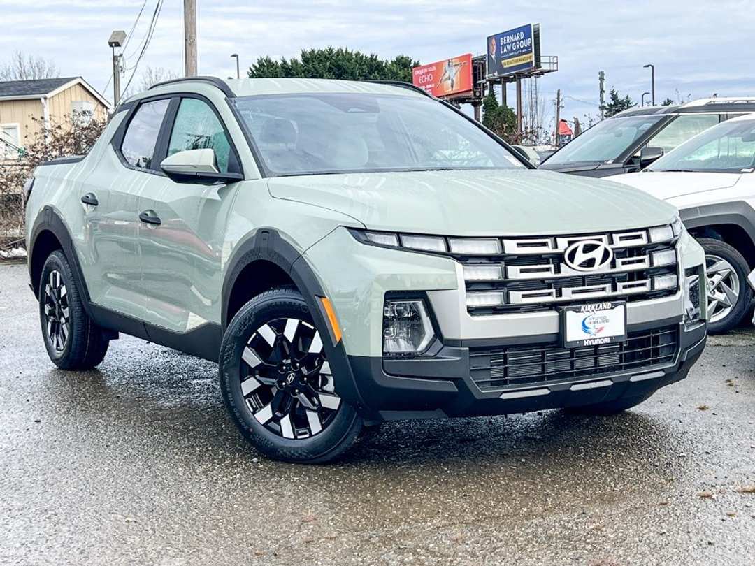 2026 Hyundai Santa Cruz SEL2.5L I4 8-Speed Automatic with SHIFTRONIC AWD 4D Crew Cab Sage Gray 18" x 7.5J Alloy Wheels, 4-Wheel Disc Brakes, 4.081 Axle Ratio, 6 Speakers, ABS brakes, Air Conditioning, Alloy wheels, AM/FM radio: SiriusXM, Apple CarPlay & Android Auto, Auto High-beam Headlights, Auto-leveling suspension, Automatic temperature control, Bed Cargo Net, Brake assist, Bumpers: body-color, Camera Mount with Fender Flares, Cargo Net, Carpeted Floor Mats, Compass, Delay-off headlights, Driver door bin, Driver vanity mirror, Dual front impact airbags, Dual front side impact airbags, Electronic Stability Control, Emergency communication system: None, Exterior Parking Camera Rear, First Aid Kit, Four wheel independent suspension, Front anti-roll bar, Front Bucket Seats, Front Center Armrest, Front dual zone A/C, Front reading lights, Fully automatic headlights, H-Tex Leatherette Seat Trim, Heated door mirrors, Heated Front Bucket Seats, Heated front seats, Illuminated entry, Low tire pressure warning, Occupant sensing airbag, Option Group 01, Outside temperature display, Overhead airbag, Overhead console, Panic alarm, Passenger door bin, Passenger vanity mirror, Power door mirrors, Power driver seat, Power steering, Power windows, Radio data system, Radio: AM/FM/HD Audio System, Rear anti-roll bar, Rear reading lights, Rear side impact airbag, Rear step bumper, Rear window defroster, Remote keyless entry, Security system, Speed control, Speed-sensing steering, Split folding rear seat, Spoiler, Steering wheel mounted audio controls, Tachometer, Tailgate Protector, Telescoping steering wheel, Tilt steering wheel, Traction control, Trip computer, Turn signal indicator mirrors, Variably intermittent wipers. Prices good through 5-31-2025. Kirkland Price includes:$1750 - Retail Bonus Cash