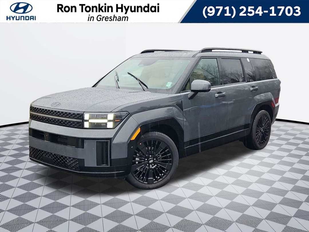 2026 Hyundai Santa Fe Hybrid Calligraphy I4 6-Speed Automatic with Shiftronic AWD 4D Sport Utility Ecotronic Gray I4, 12 Speakers, 3rd row seats: bench, 4-Wheel Disc Brakes, ABS brakes, Air Conditioning, Alloy wheels, AM/FM radio: SiriusXM, Apple CarPlay & Android Auto, Auto High-beam Headlights, Auto-dimming Rear-View mirror, Automatic temperature control, Brake assist, Bumpers: body-color, Cargo Net, Cargo Tray, Carpeted Floor Mats, Delay-off headlights, Driver door bin, Driver vanity mirror, Dual front impact airbags, Dual front side impact airbags, Electronic Stability Control, Emergency communication system, Exterior Parking Camera Rear, First Aid Kit, Four wheel independent suspension, Front anti-roll bar, Front Bucket Seats, Front Center Armrest, Front dual zone A/C, Front reading lights, Fully automatic headlights, Garage door transmitter: HomeLink, Heads-Up Display, Heated and Ventilated Front Bucket Seats, Heated door mirrors, Heated front seats, Heated rear seats, Heated steering wheel, Illuminated entry, Knee airbag, Leather steering wheel, Low tire pressure warning, Memory seat, Navigation System, Occupant sensing airbag, Option Group 01, Outside temperature display, Overhead airbag, Overhead console, Panic alarm, Passenger door bin, Passenger vanity mirror, Power door mirrors, Power driver seat, Power Liftgate, Power moonroof, Power passenger seat, Power steering, Power windows, Quilted Premium Nappa Leather Seat Trim, Radio: AM/FM/HD Bose Premium Audio System, Rain sensing wipers, Rear anti-roll bar, Rear side impact airbag, Rear window defroster, Rear window wiper, Remote keyless entry, Roadside Assistance Kit, Roof Rack Crossbars, Security system, Speed control, Speed-sensing steering, Split folding rear seat, Spoiler, Steering wheel mounted audio controls, Tachometer, Telescoping steering wheel, Tilt steering wheel, Traction control, Trip computer, Turn signal indicator mirrors, Variably intermittent wipers, Ventilated front seats, Wheels: 20" x 8.5J Unique Dark Finish Alloy, I4. Call for availability. Come in to Ron Tonkin Gresham Hyundai to test drive today! DA2028 View our entire inventory at https://www.rontonkinhyundai.com/ Pricing includes all applicable factory rebates, and discounts, buyer must finance through HMFA on approved credit. Price excludes tax, title, license, doc fee and dealer added accessories. Price includes: $4000 - Hyundai HMF Dealer Choice : $4000 discount and 5.39% APR for 24 months. $44.05 per $1000 financed. Available to well qualified buyers who finance through Hyundai Motor Finance. H704. Exp. 03/31/2026