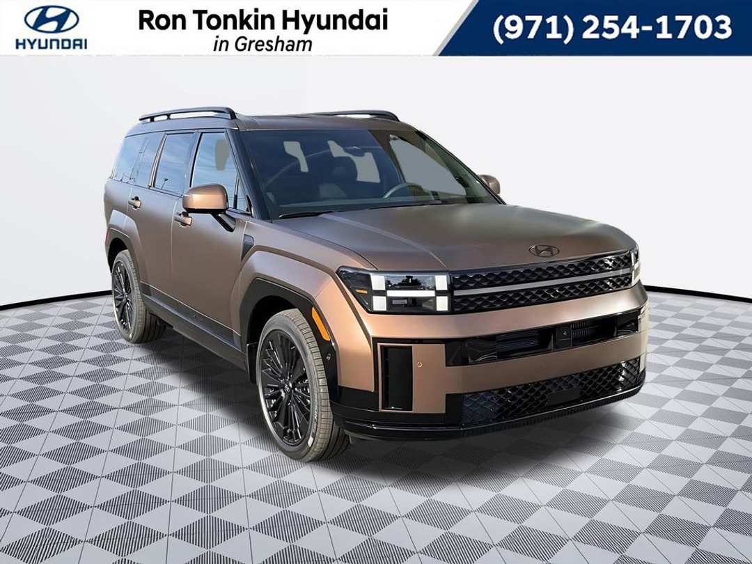 2026 Hyundai Santa Fe Hybrid Calligraphy I4 6-Speed Automatic with Shiftronic AWD 4D Sport Utility Earthy Brass Matte I4, 12 Speakers, 3rd row seats: bench, 4-Wheel Disc Brakes, ABS brakes, Air Conditioning, Alloy wheels, AM/FM radio: SiriusXM, Apple CarPlay & Android Auto, Auto High-beam Headlights, Auto-dimming Rear-View mirror, Automatic temperature control, Brake assist, Bumpers: body-color, Cargo Net, Cargo Organizer, Carpeted Floor Mats, Delay-off headlights, Driver door bin, Driver vanity mirror, Dual front impact airbags, Dual front side impact airbags, Electronic Stability Control, Emergency communication system, Exterior Parking Camera Rear, First Aid Kit, Four wheel independent suspension, Front anti-roll bar, Front Bucket Seats, Front Center Armrest, Front dual zone A/C, Front reading lights, Fully automatic headlights, Garage door transmitter: HomeLink, Heads-Up Display, Heated and Ventilated Front Bucket Seats, Heated door mirrors, Heated front seats, Heated rear seats, Heated steering wheel, Illuminated entry, Knee airbag, Leather steering wheel, Low tire pressure warning, Memory seat, Mudguards, Navigation System, Occupant sensing airbag, Option Group 01, Outside temperature display, Overhead airbag, Overhead console, Panic alarm, Passenger door bin, Passenger vanity mirror, Power door mirrors, Power driver seat, Power Liftgate, Power moonroof, Power passenger seat, Power steering, Power windows, Quilted Premium Nappa Leather Seat Trim, Radio: AM/FM/HD Bose Premium Audio System, Rain sensing wipers, Rear anti-roll bar, Rear side impact airbag, Rear window defroster, Rear window wiper, Remote keyless entry, Security system, Speed control, Speed-sensing steering, Split folding rear seat, Spoiler, Steering wheel mounted audio controls, Tachometer, Telescoping steering wheel, Tilt steering wheel, Traction control, Trip computer, Turn signal indicator mirrors, Variably intermittent wipers, Ventilated front seats, Wheels: 20" x 8.5J Unique Dark Finish Alloy, I4. Call for availability. Come in to Ron Tonkin Gresham Hyundai to test drive today! DA2028 View our entire inventory at https://www.rontonkinhyundai.com/ Pricing includes all applicable factory rebates, and discounts, buyer must finance through HMFA on approved credit. Price excludes tax, title, license, doc fee and dealer added accessories. Price includes: $2000 - Retail Bonus Cash. Exp. 04/30/2026
